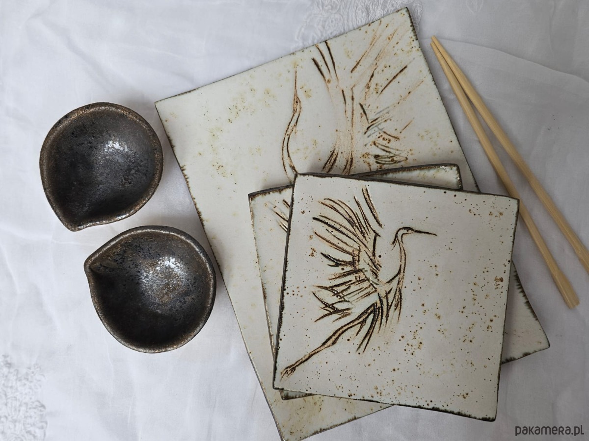 Ceramiczny zestaw do sushi dla 2 osób Żurawie