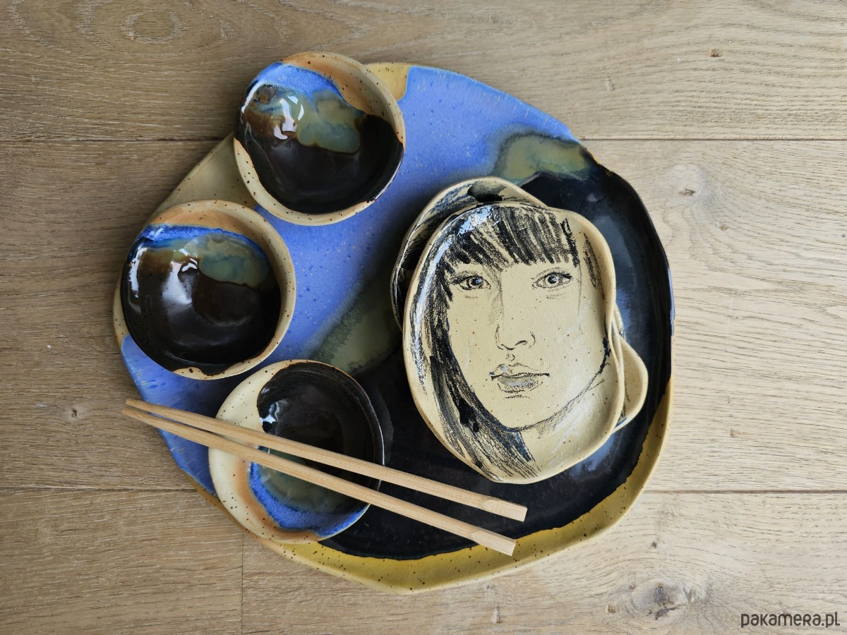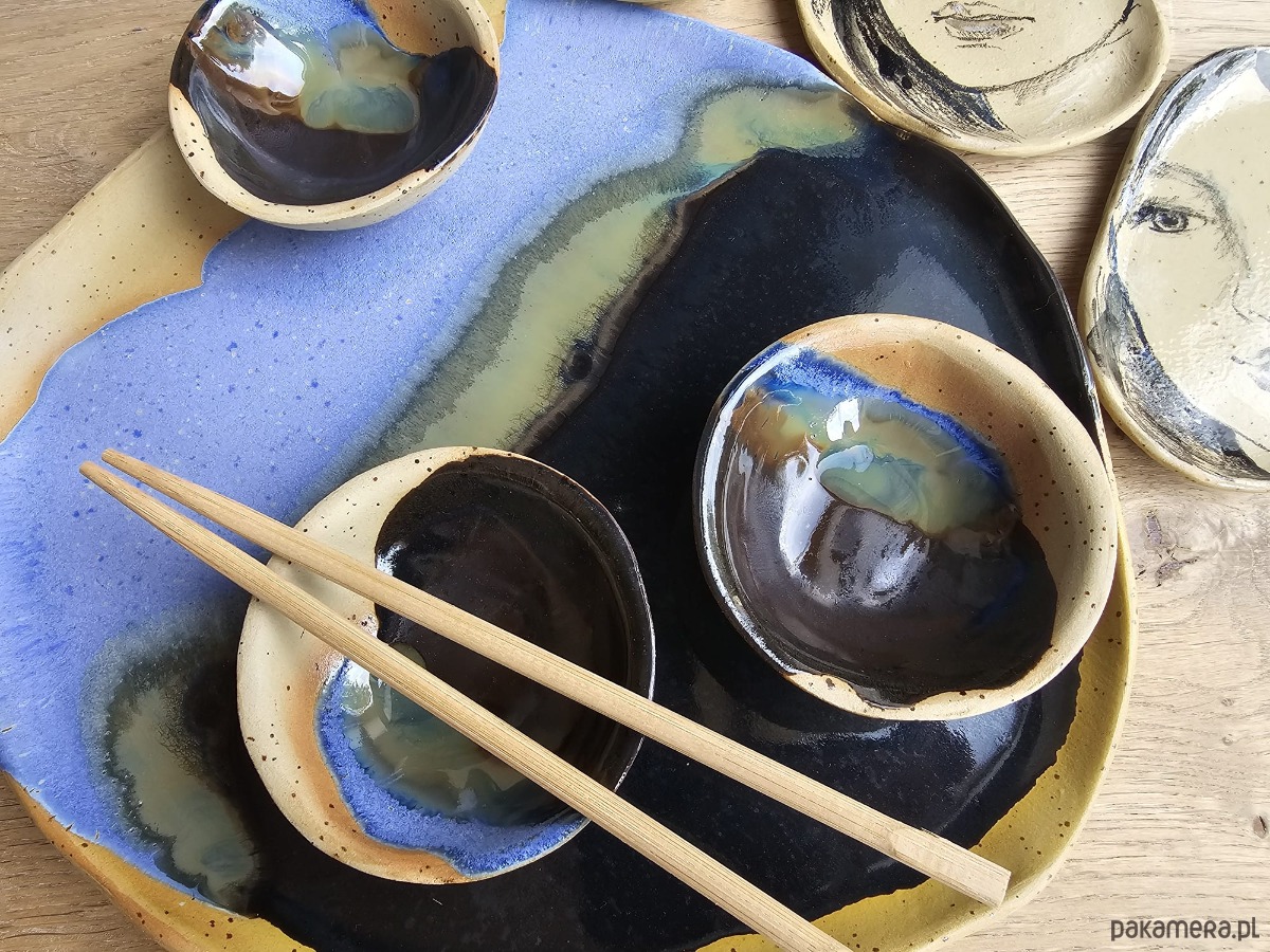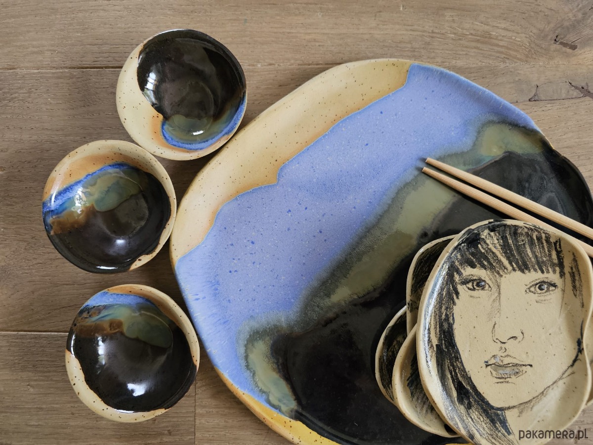 Ręcznie wykonany zestaw ceramiczny do sushi dla 4 osób