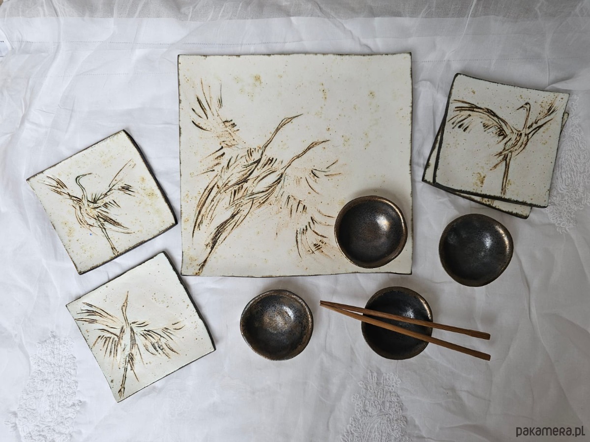 Ceramiczny zestaw do sushi dla 4 osób Żurawie