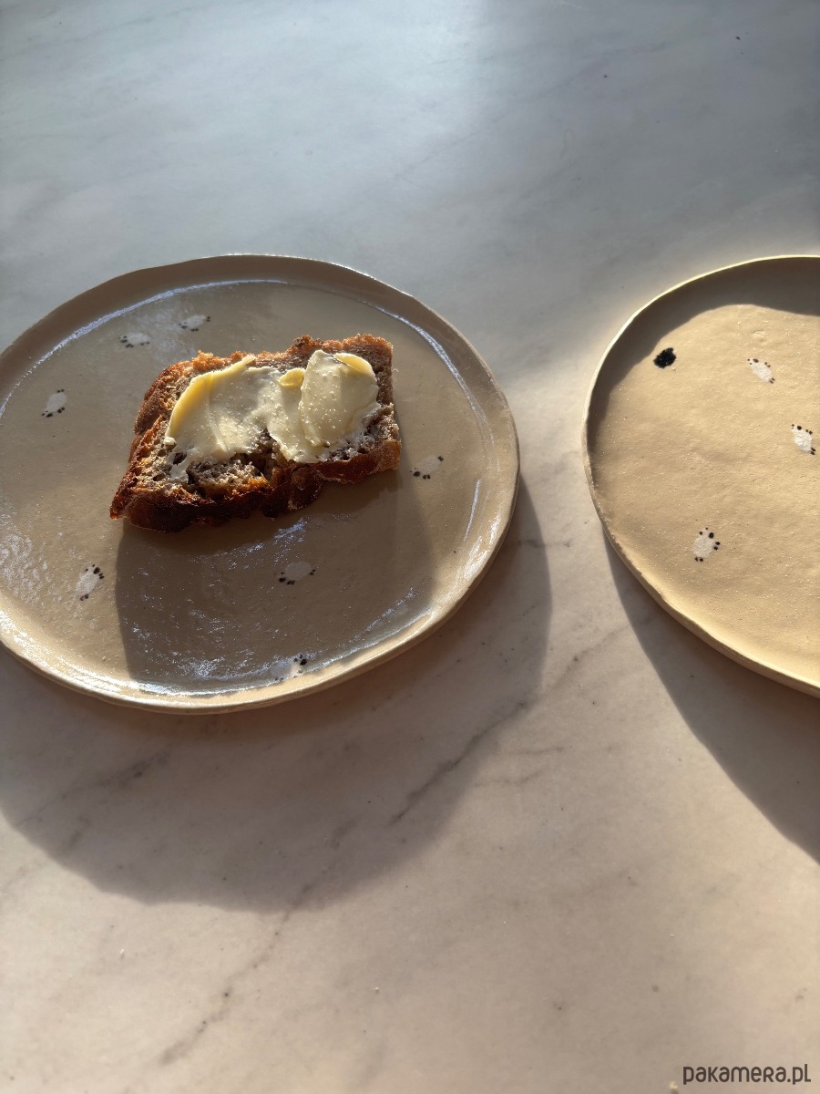 Talerze są ulepione i szkliwione ręcznie przez Moni, założycielkę marki Maison Fragile. Każdy przedmiot jest tworzony od początku, bez użycia form oraz pokryty jest autorskim zestawem szkliw, dzięki czemu nie ma drugiego takiego samego przedmiotu, każdy jest unikatowy i noszący ślady rzemieślniczej pracy.