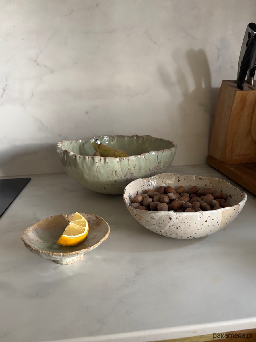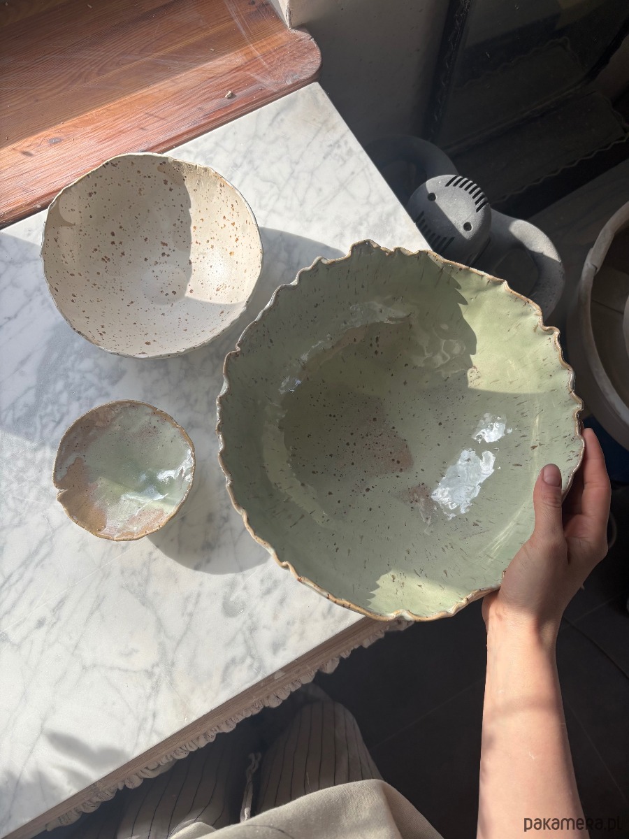 Ceramiczny Zestaw Okrągła Misa na Sałaty XL Matcha Green & 2 miseczki