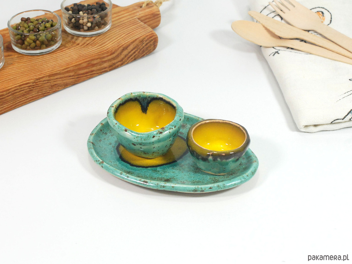Ręcznie formowane i malowane ceramiczne miseczki możesz wykorzystać do serwowania jajek, sosów, przypraw czy drobnych przekąsek.