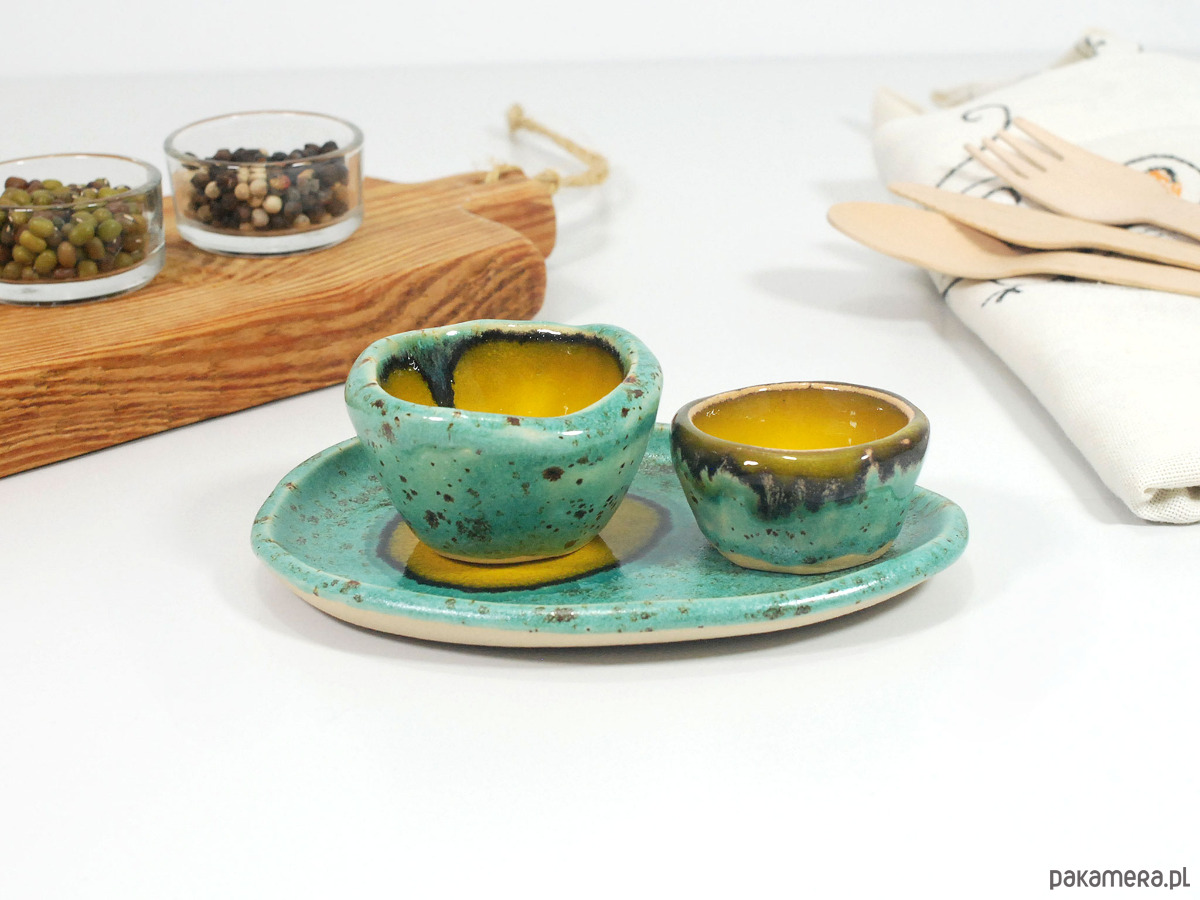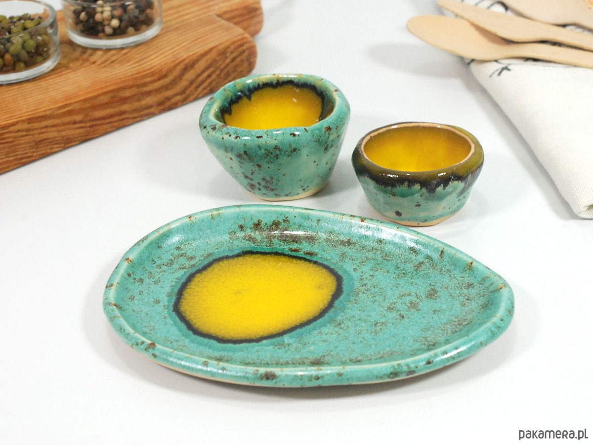 Ręcznie formowane i malowane ceramiczne miseczki możesz wykorzystać do serwowania jajek, sosów, przypraw czy drobnych przekąsek.