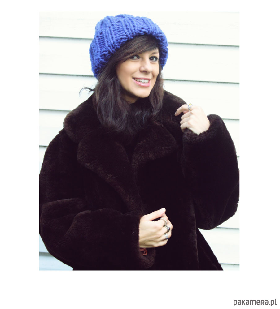 Ręcznie wykonana czapka w kolorze chabrowym.