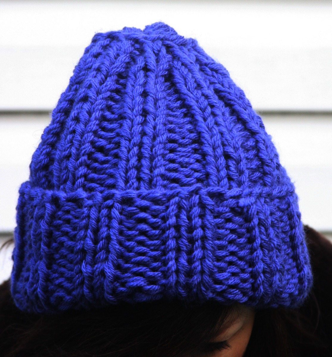 Ręcznie wykonana czapka w kolorze chabrowym.