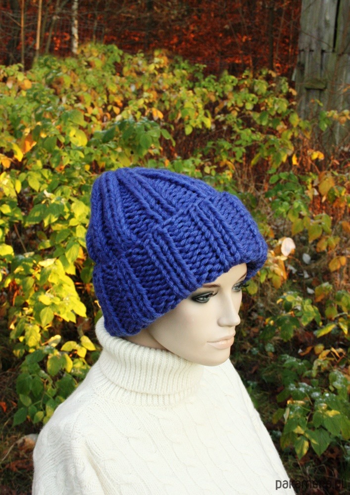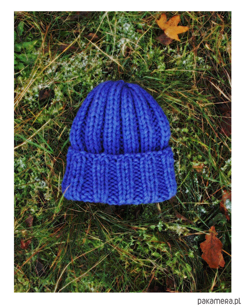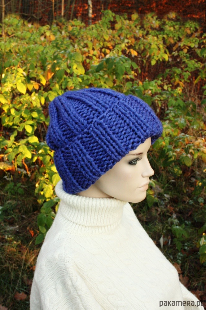 Ręcznie wykonana czapka w kolorze chabrowym. Mieszanka z wełną.