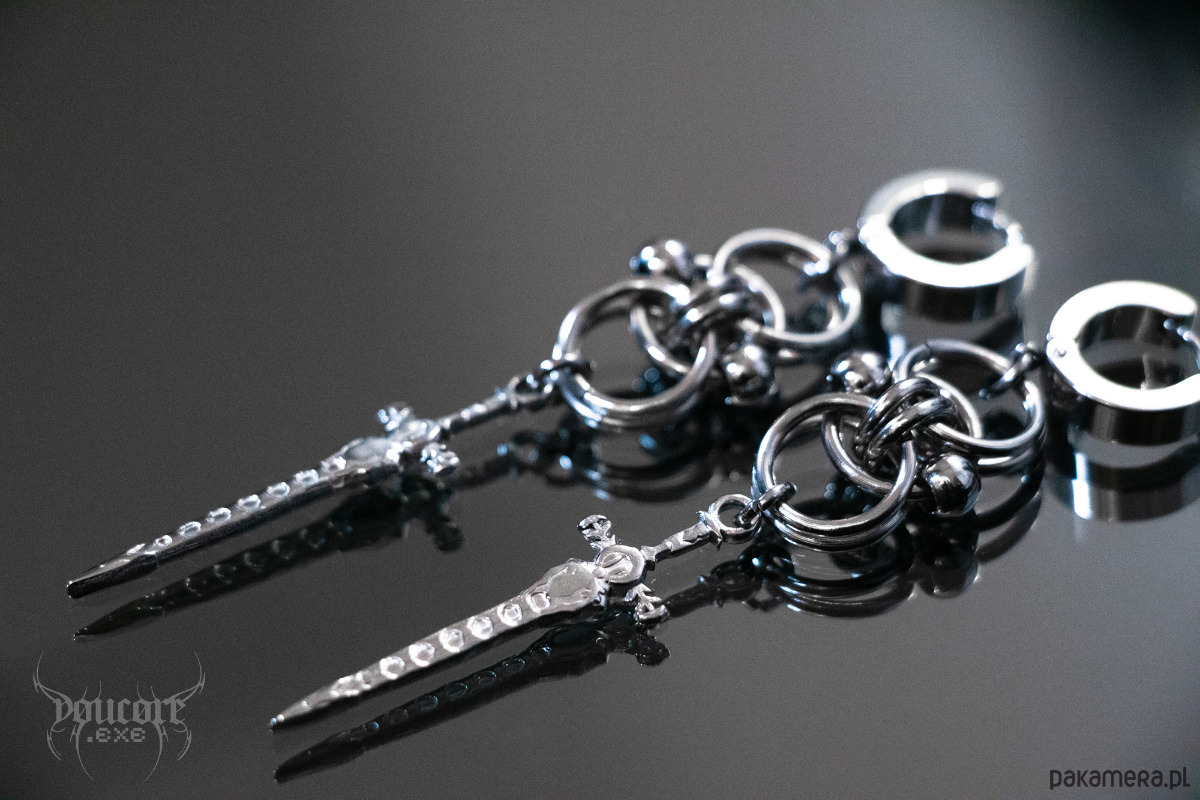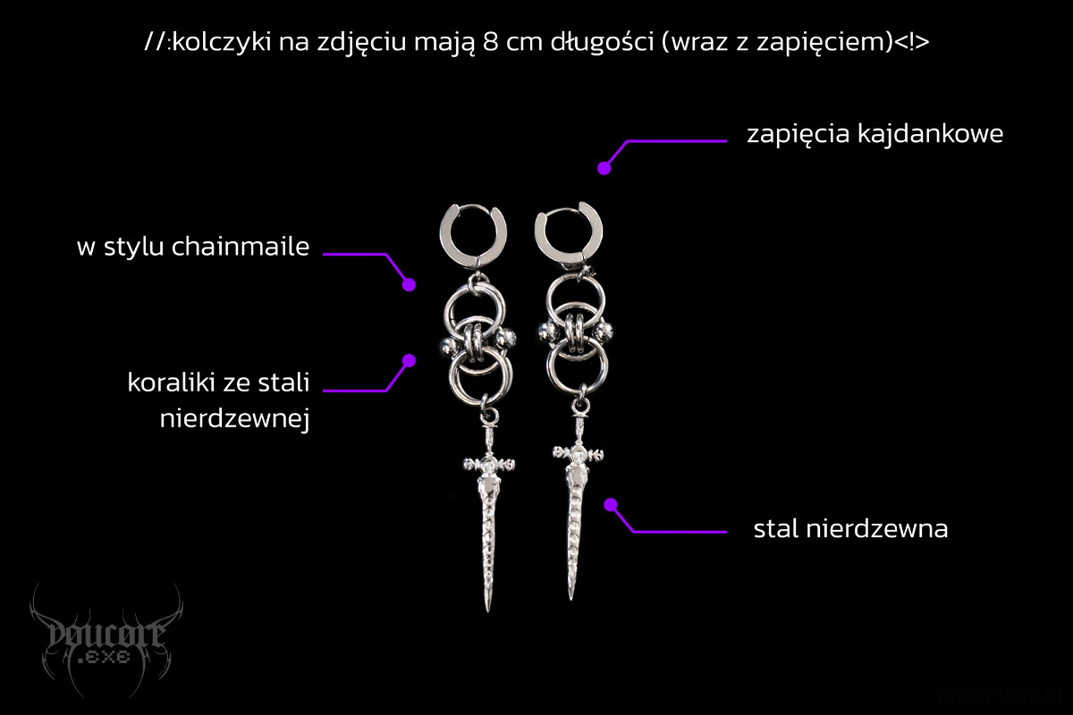 Chain mail kolczyki miecze * stal nierdzewna * cyber goth * y2k *