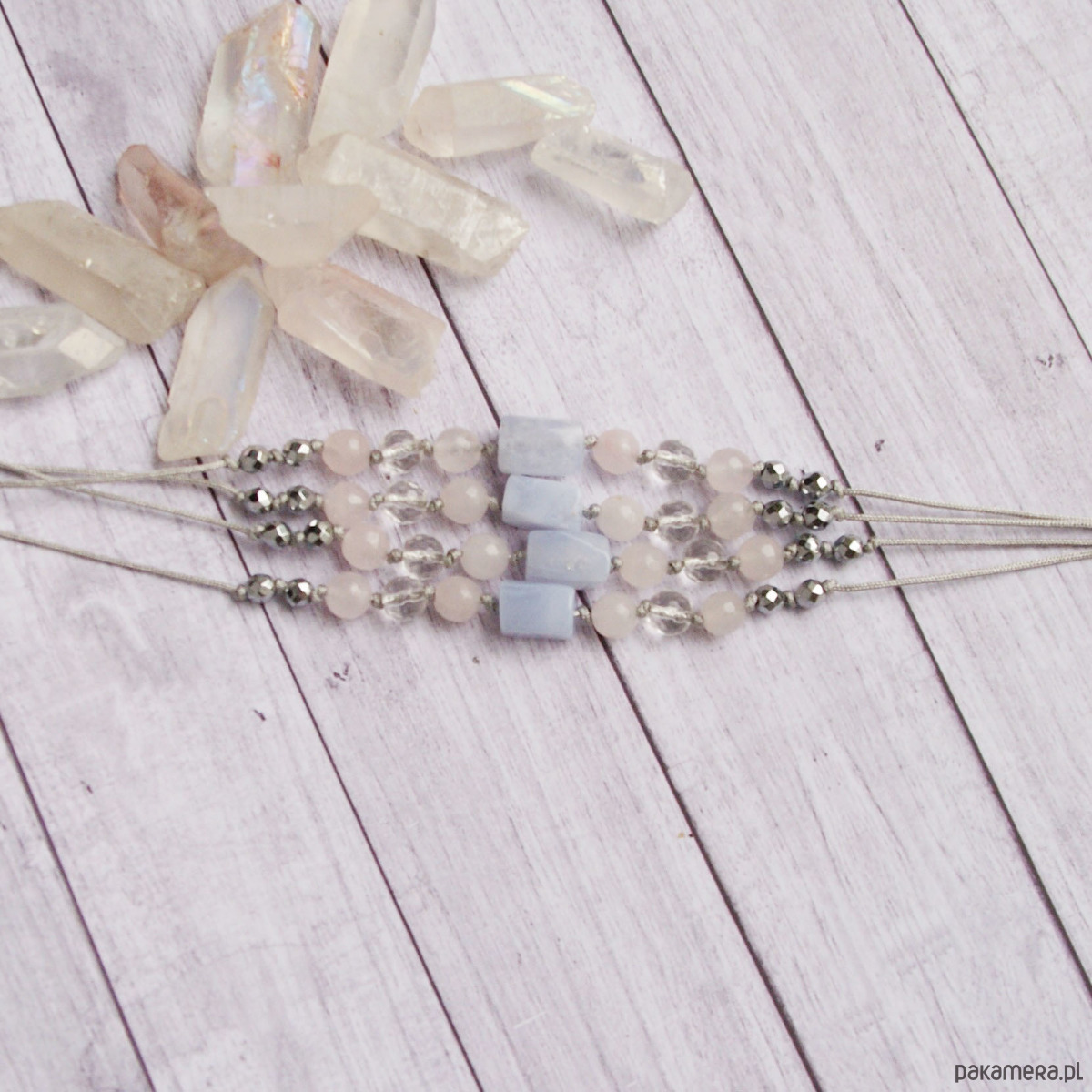 - Rodzaj kamienia: kwarc różowy, kryształ górski, hematyt, chalcedon