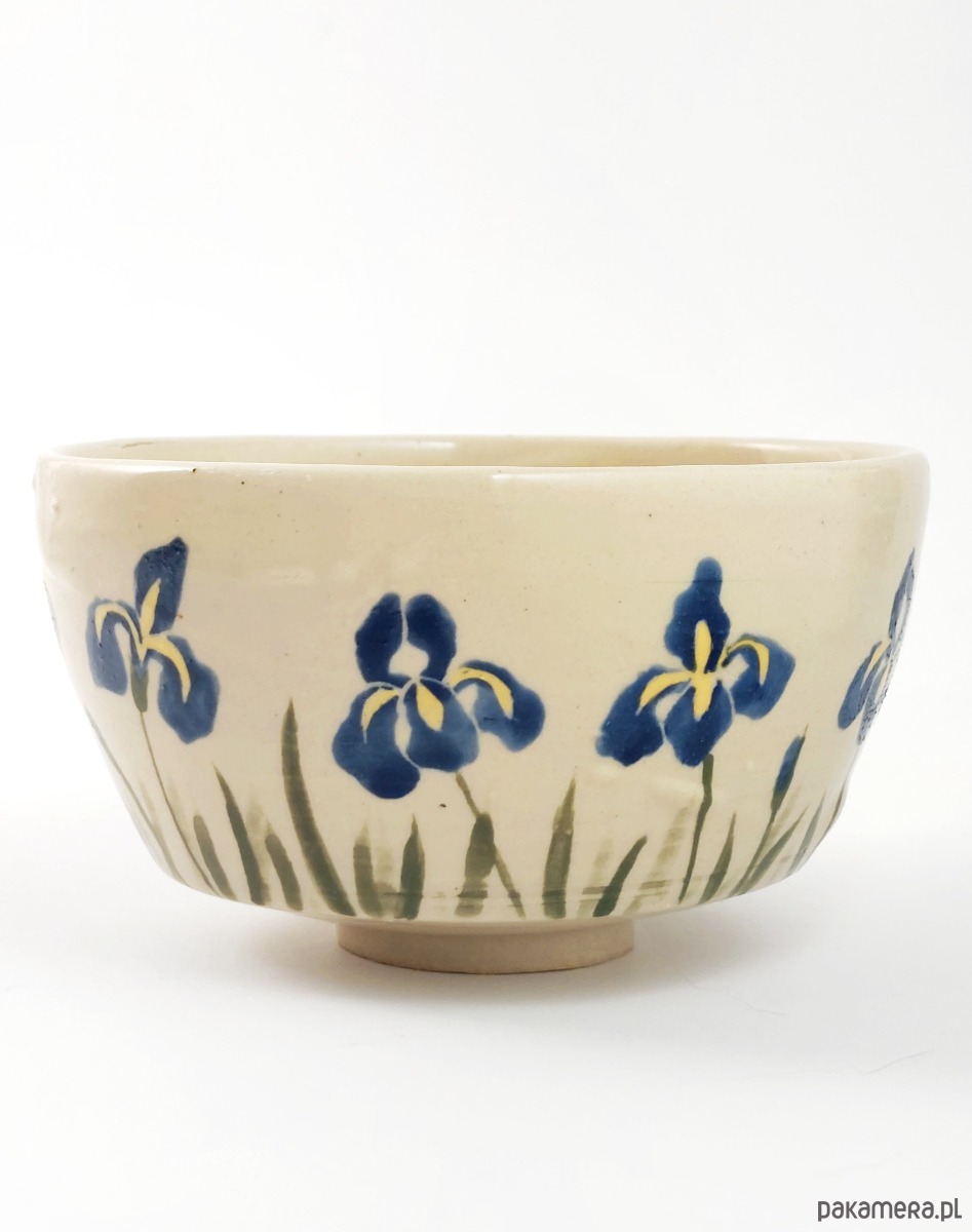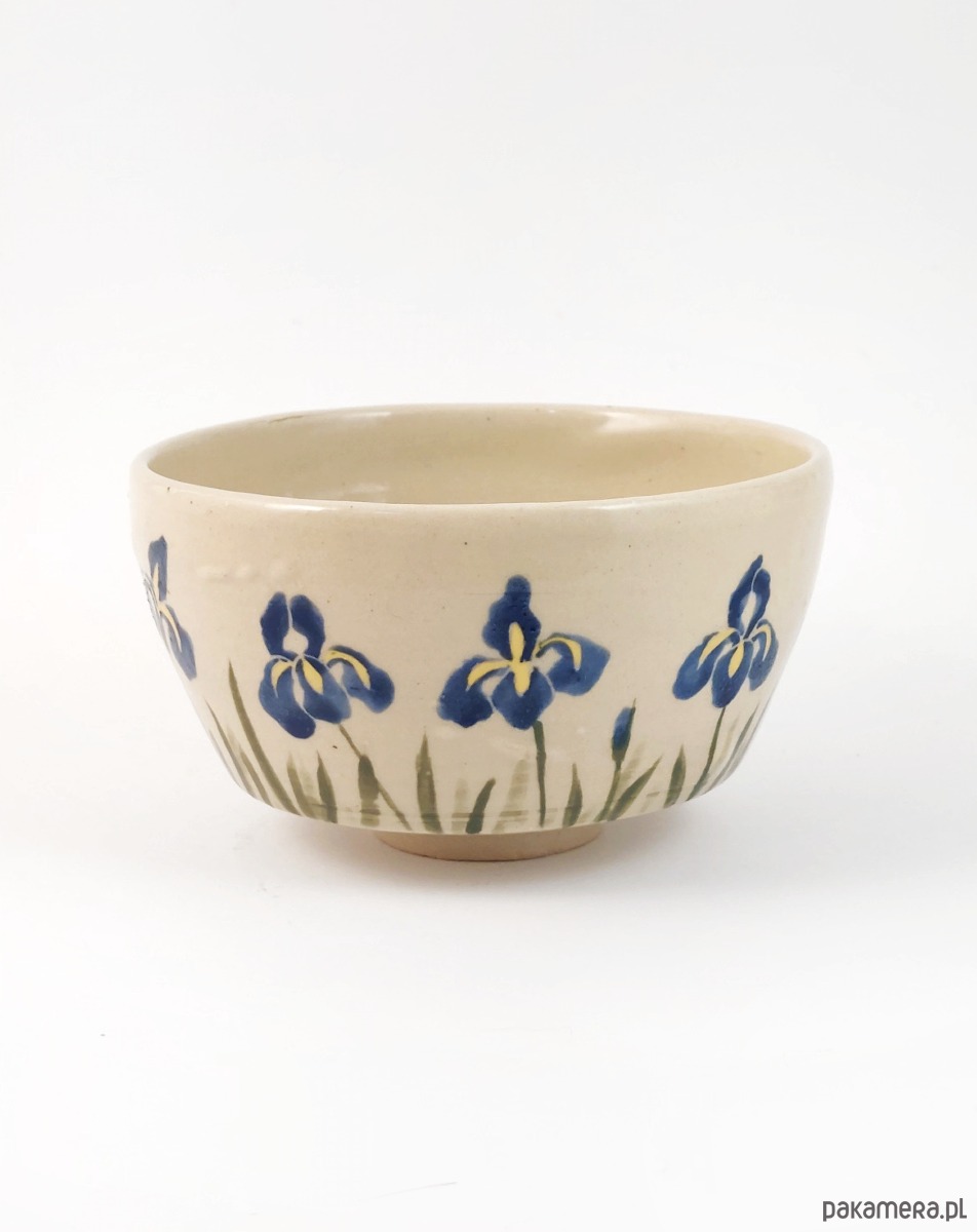 Chawan z Irysami do przyrządzania i picia zielonej herbaty.