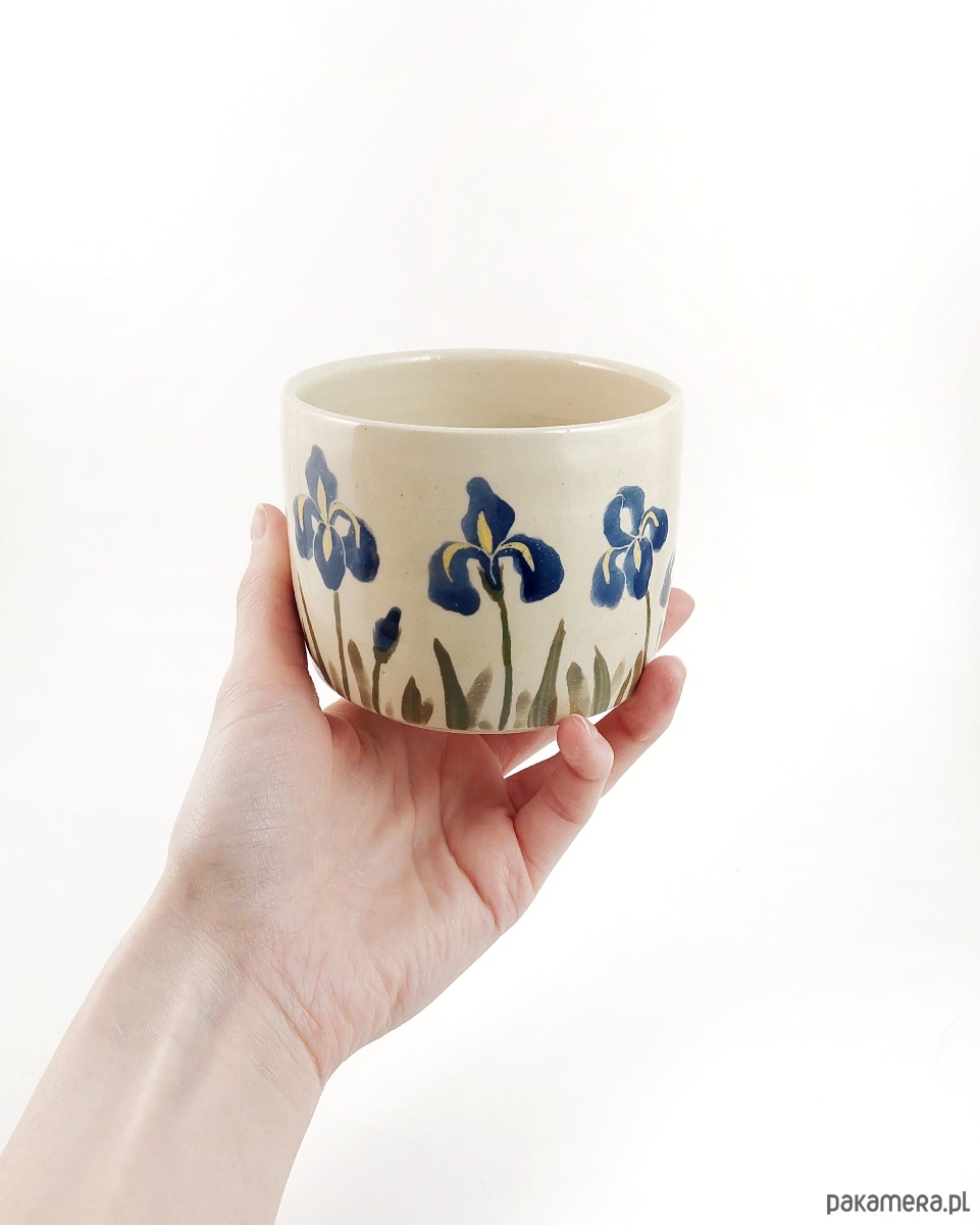 Chawan z Irysami do przyrządzania i picia zielonej herbaty.