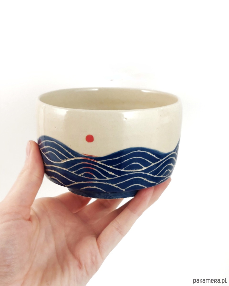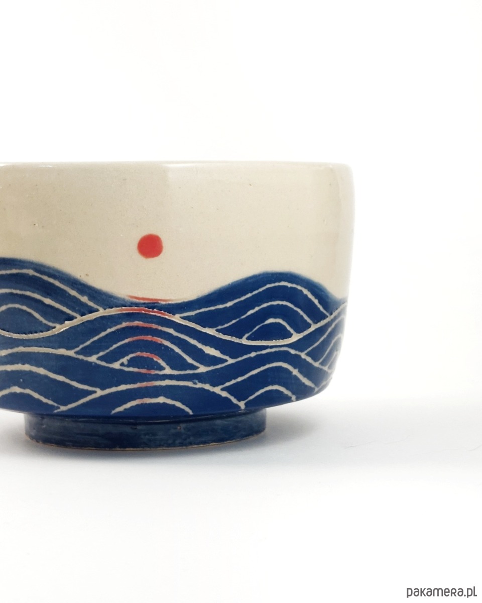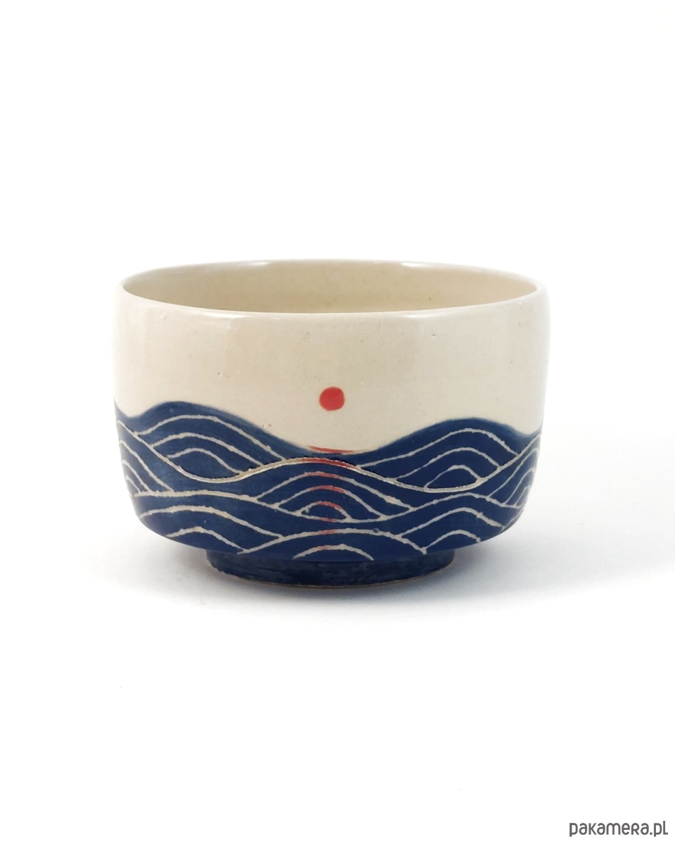 Chawan do przyrządzania i picia zielonej herbaty. Miseczka z namalowanym morzem.