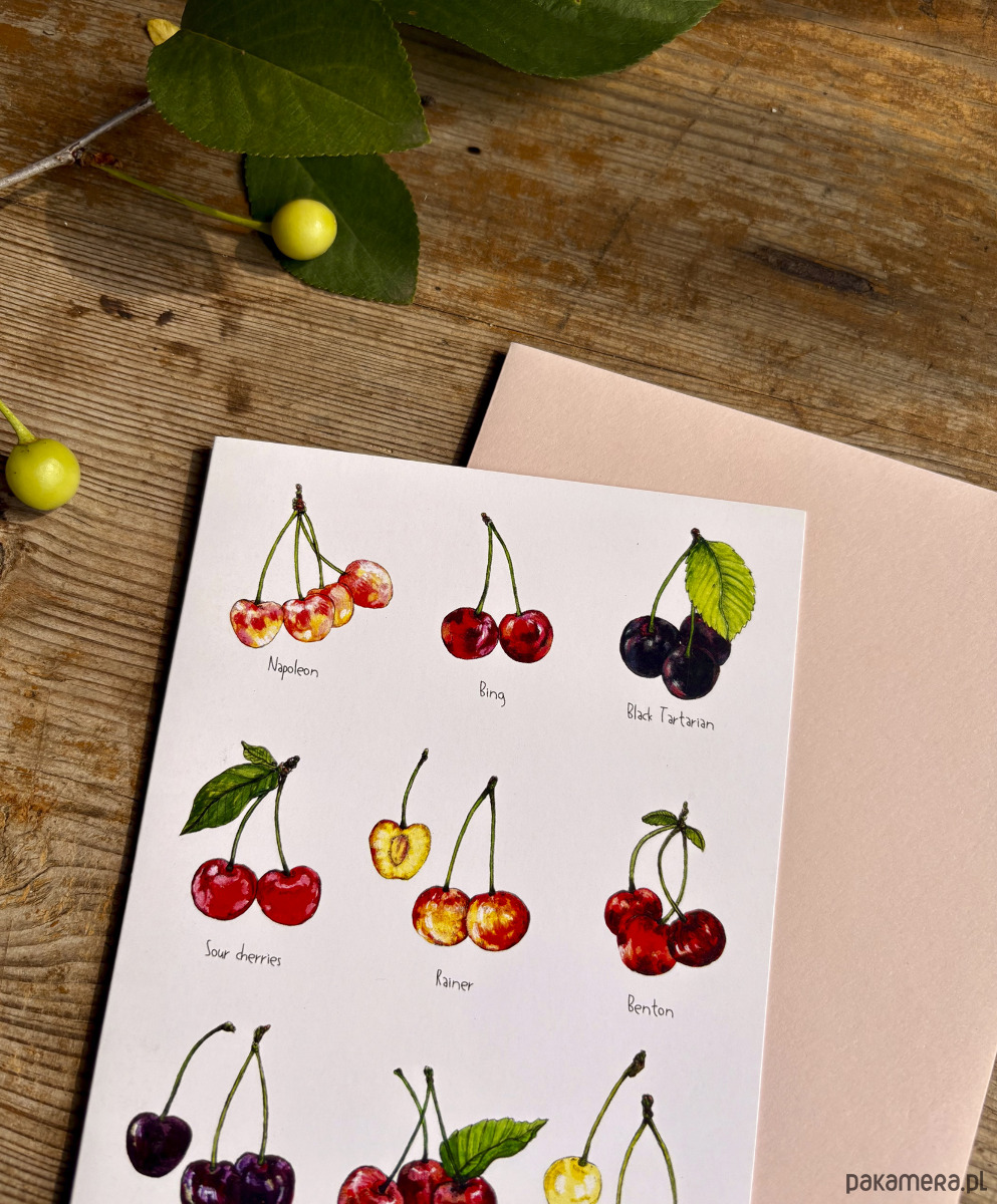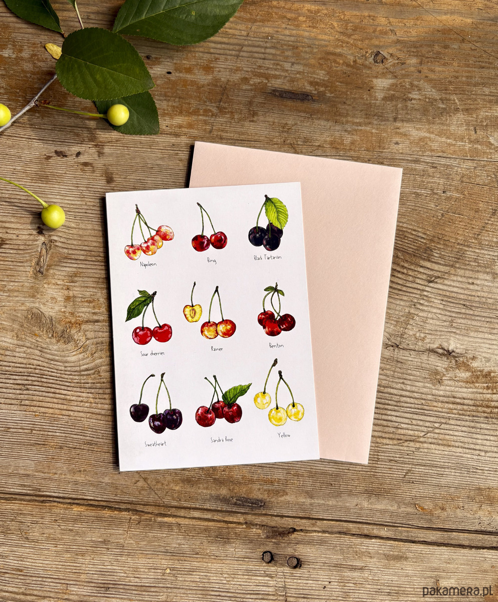 Cherries- Kartka- Grafika- Ilustracja- Owoce
