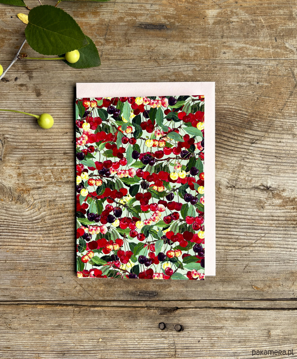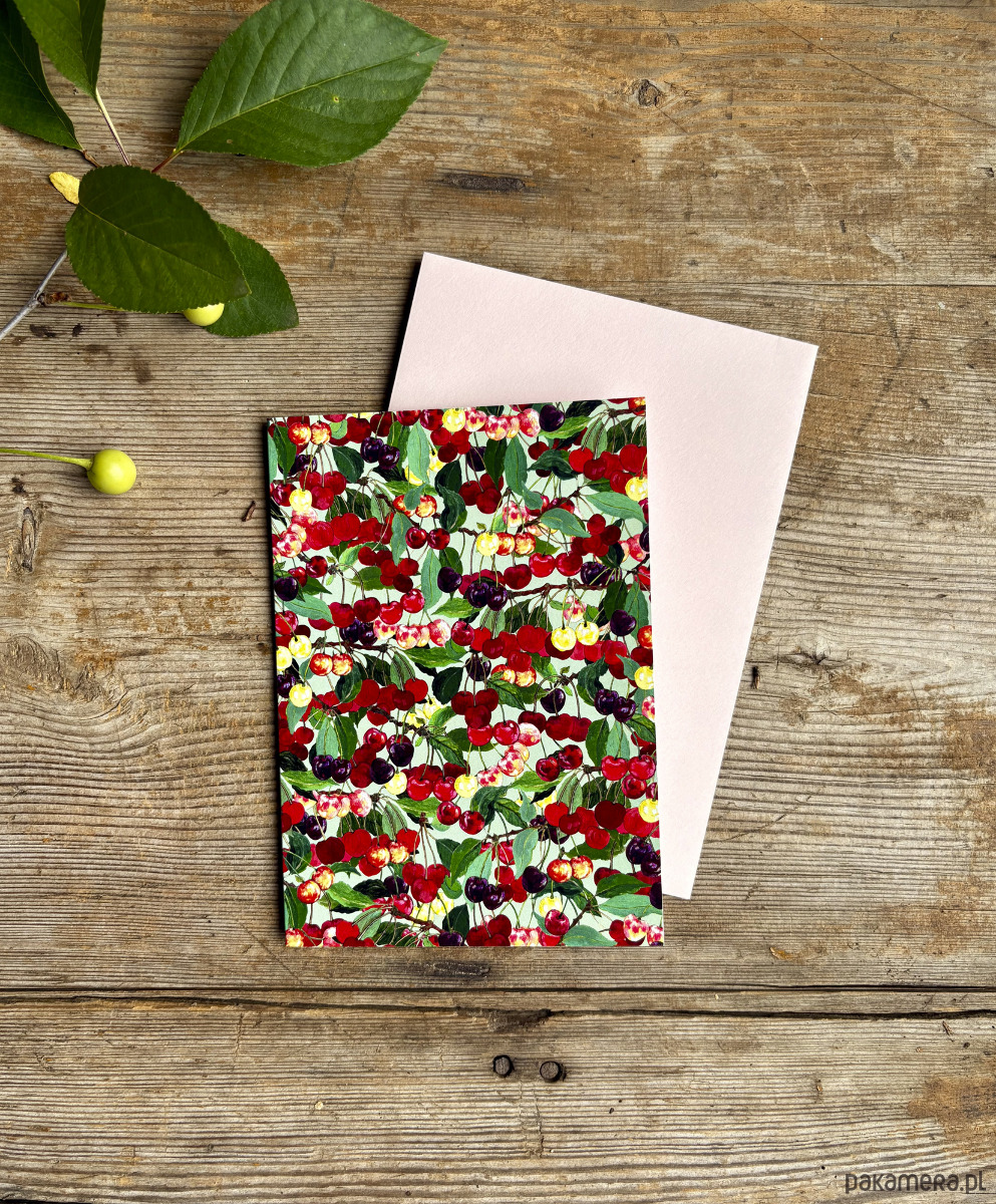Cherries pattern- Kartka- Grafika- Ilustracja- Owoce