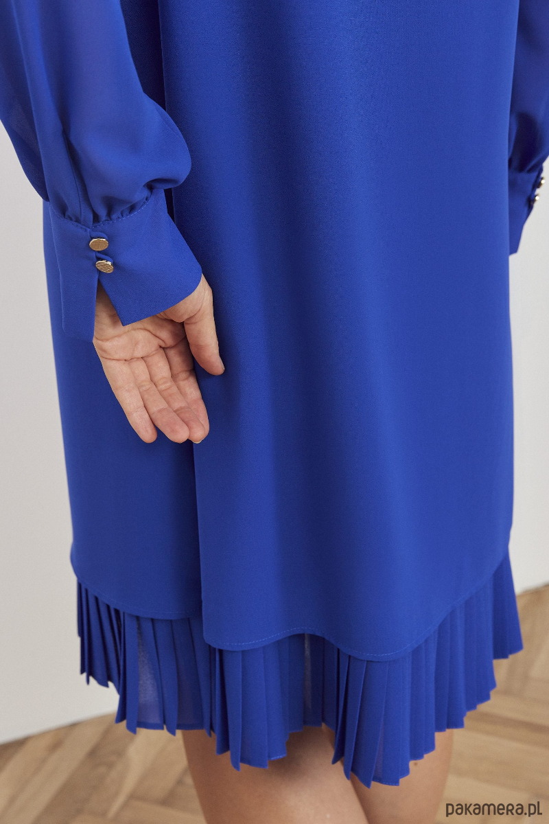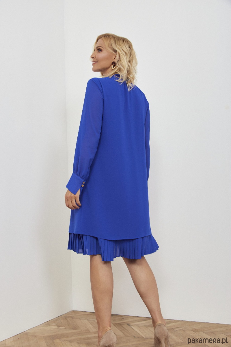 Sukienka podszyta jest podszewką, aby dodatkowo zapewnić swobodę ruchów. Całość wieńczy plisowany dół, który dodaje lekkości sylwetce.