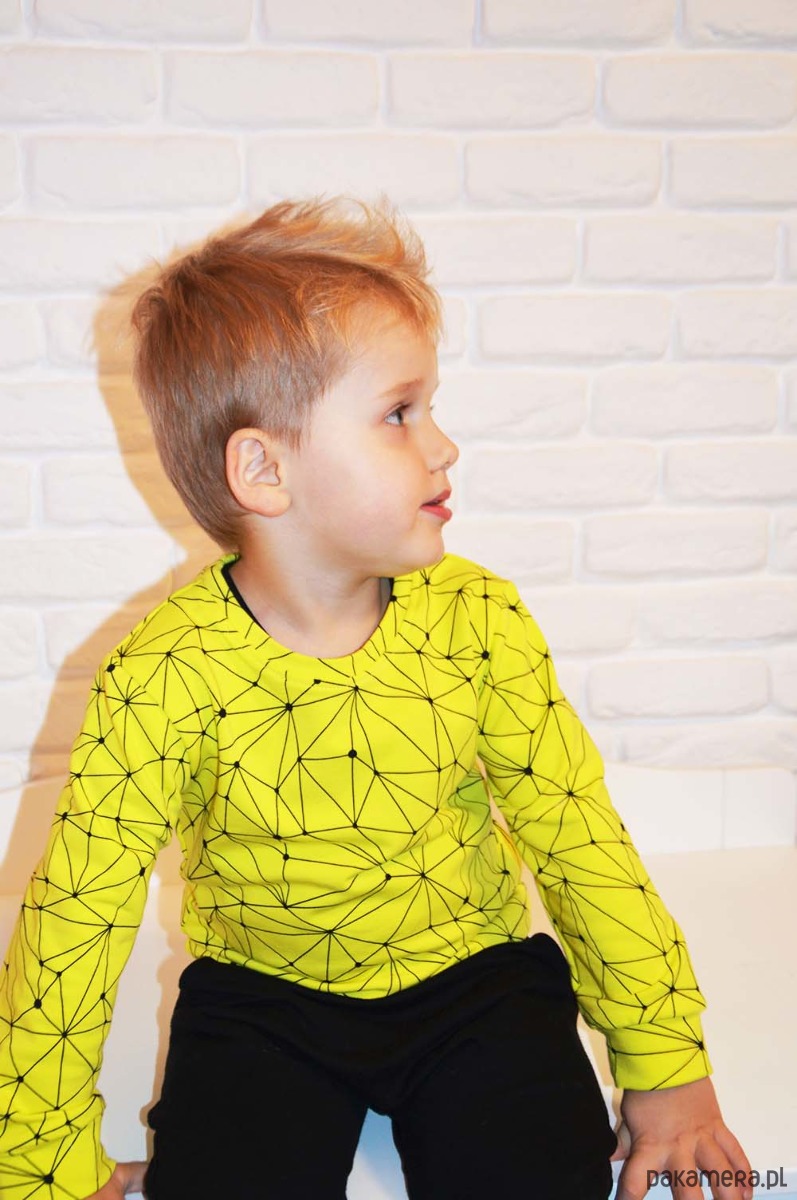 Modna bluza z długim rękawem oraz okrągłym dekoltem wykonana z miękkiej dzianiny dresowej w kolorze limonki. Rewelacyjny kolor i wzór pajęczyny na limonce zagwarantują indywidualny styl Twojemu dziecku. Rękawy wykończone ściągaczem, ściągacz również wokół szyi i na dole. Miła w dotyku, modna i bardzo wygodna. Piękny kolor i krój sprawią, że dziecko będzie czuło się wyjątkowe.
