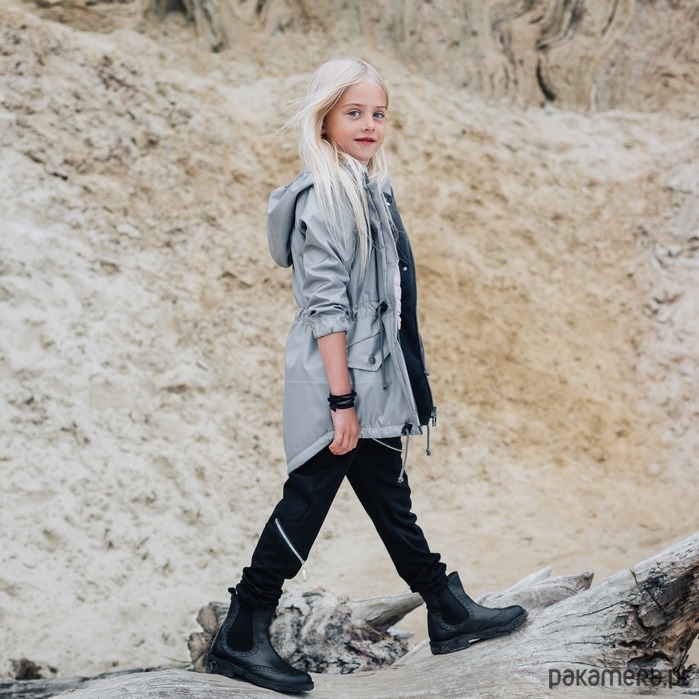 Stylowa jesienno-wiosenna parka wykonana z ortalionu, która zapewni dziecku ciepło i wygodę. Szeroki kaptur z troczkami pozwoli uchronić przed zimnem, a elastyczny materiał o nieco luźniejszym kroju sprawi, że bez trudu będzie można włożyć ją na grubszy sweter.