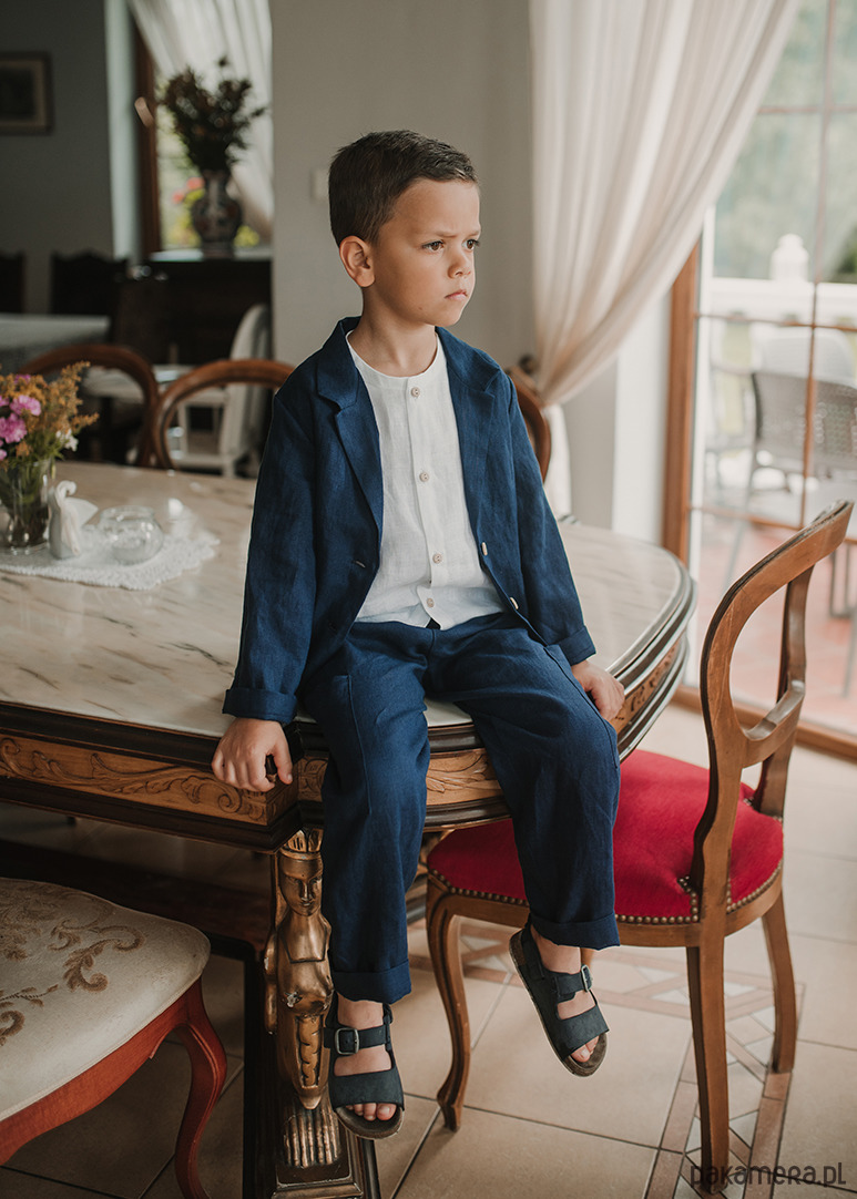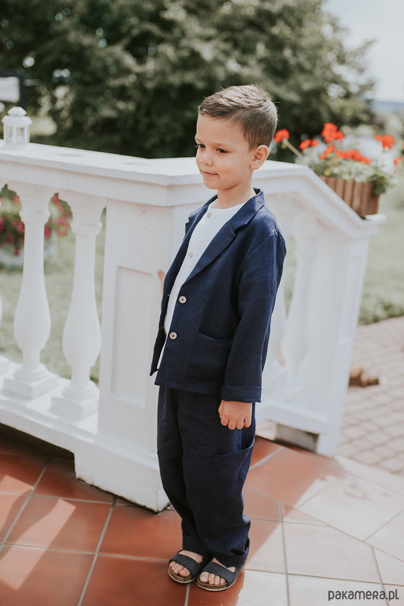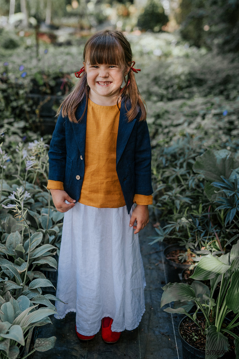 Prosta i ponadczasowa marynarka zaprojektowana dla chłopców i dziewcząt, wykonana w 100% ze zmiękczanego lnu. Połącz go z naszymi lnianymi spodniami MARSHMALLOW lub spódnicą Maxi HOLLYHOCK, aby uzyskać idealny wygląd!