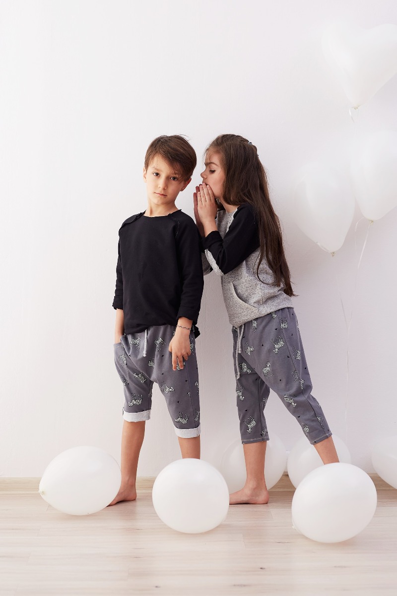 Model wykonano z wysokiej jakości, holenderskiej bawełnianej dzianiny firmy Qjutie Kids.