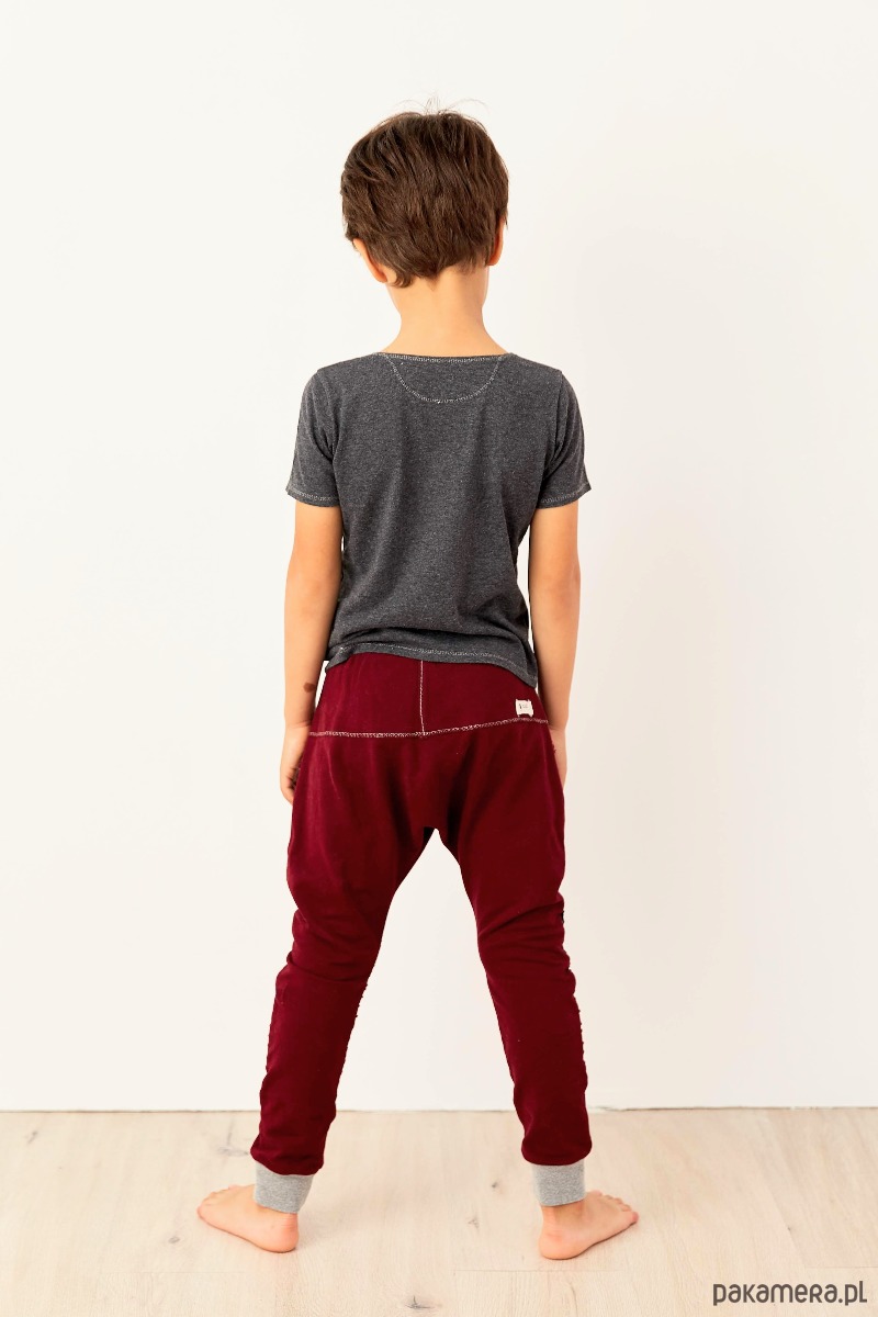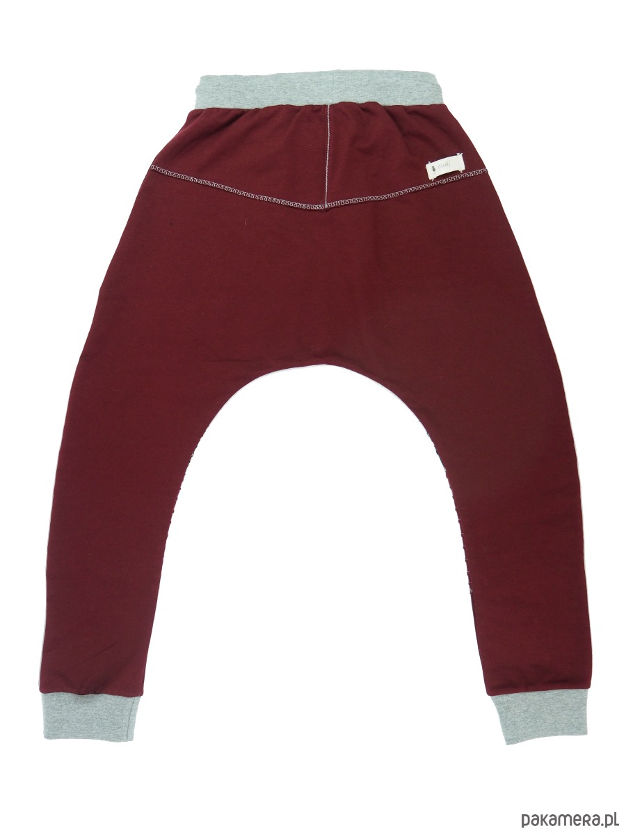 Wygodne spodnie typu baggy z lekko obniżonym krokiem, dwiema kieszeniami i elastyczną talią.