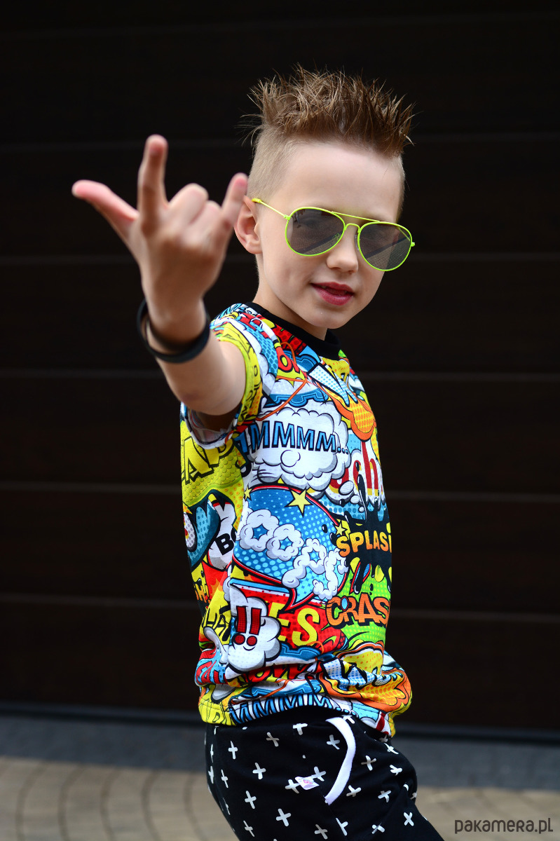 Koszulka z krótkim rękawkiem. Motyw idealny dla wesołych i kolorowych chłopaków wielbicieli komiksów. Jersey z elastenem. Możliwość wyboru koloru ściągacza : czerwony , niebieski i czarny.