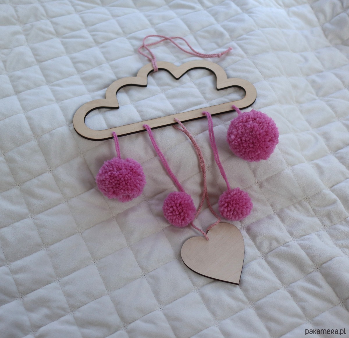 Chmura - ozdoba do pokoiku z pomponami