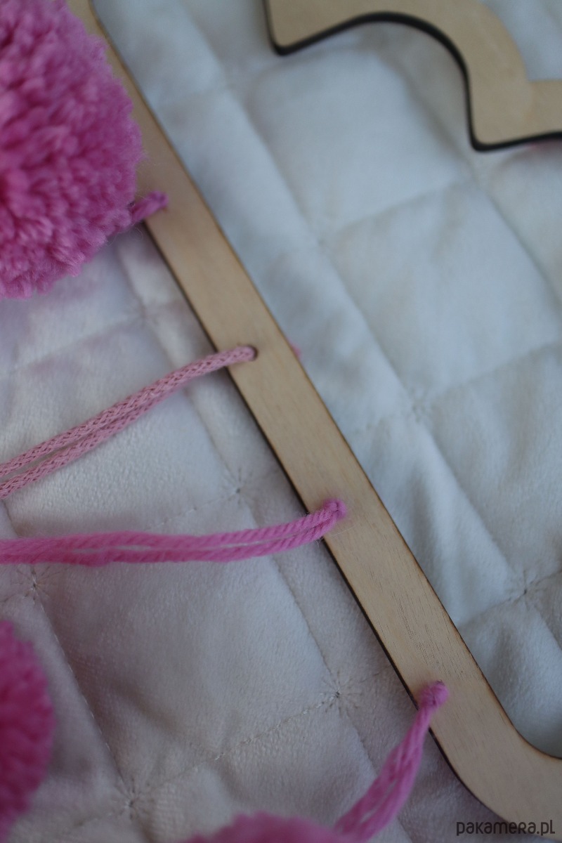 Pompony w kolorze różowym wykonane z włóczki 100% wełna firmy Drops.
