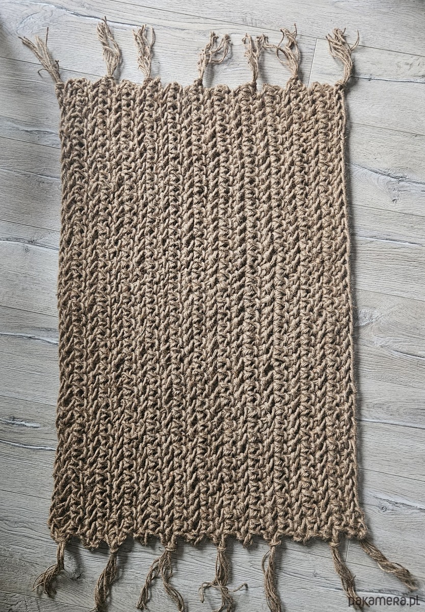 Naturalny dywanik wykonany ręcznie ze sznurka konopnego to połączenie prostoty, trwałości i rzemiosła. Surowa faktura oraz naturalny, ciepły odcień konopi doskonale wpisują się w stylistykę boho, eko i rustykalną. Delikatne frędzle na krawędziach dodają mu lekkości i rękodzielniczego charakteru.