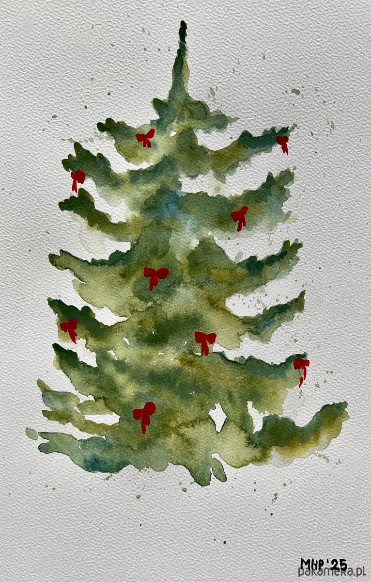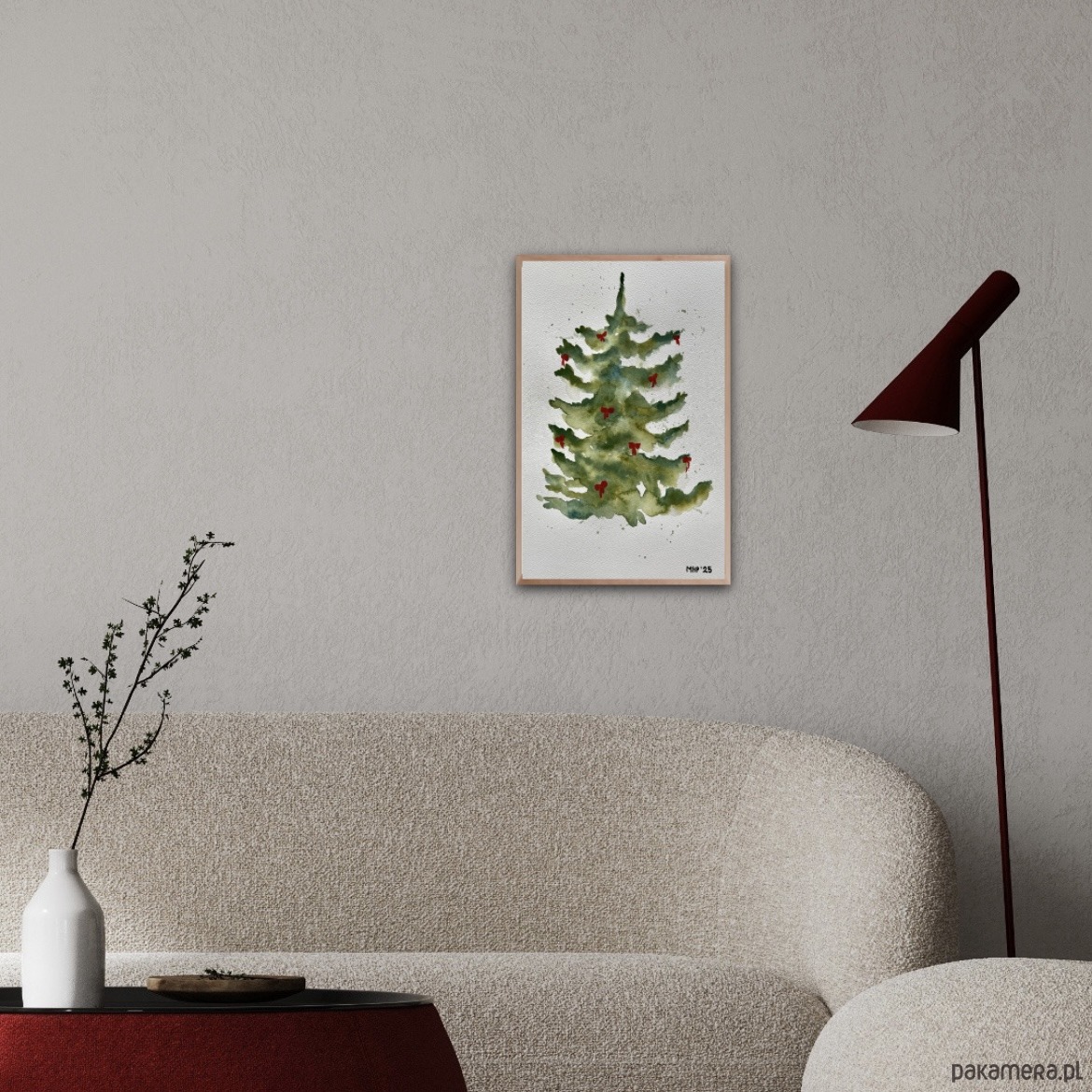 Choinka to oryginalna akwarela namalowana na profesjonalnym papierze akwarelowym 300g. Format a4. Praca jest sygnowana z przodu oraz podpisana z tyłu.