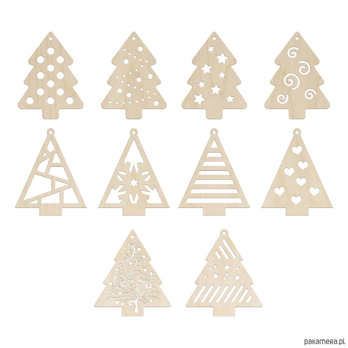 Choinka Drewniana Ażurowa ZESTAW MIX 10 SZTUK Zawieszki Ozdoby na Choinkę