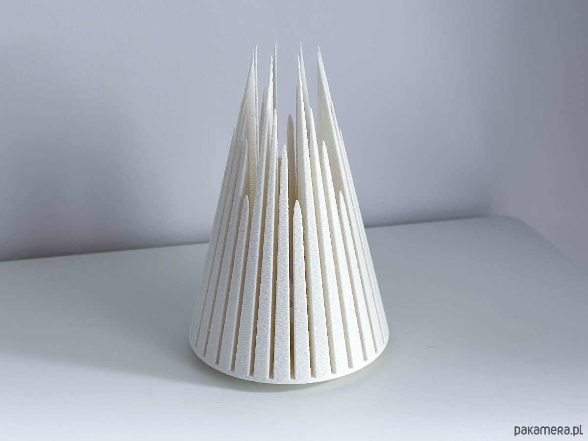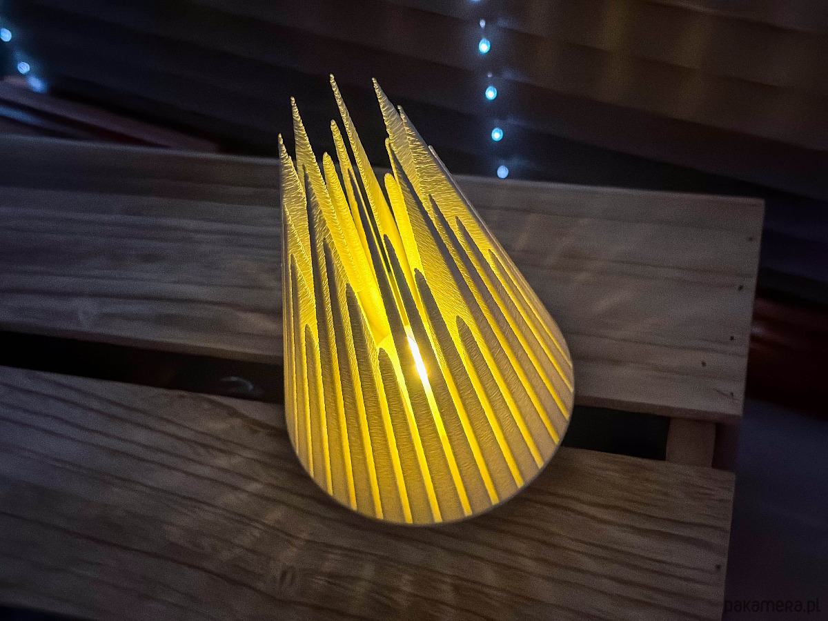 Ta wyjątkowa choinka ma kształt góry lodowej, nadając jej nowoczesny, zimowy charakter. Model posiada wyjmowaną podstawę zaprojektowaną tak, aby pomieścić standardową świeczkę LED typu tea-light ~37 mm (dołączony do ozdoby), tworząc miękkie, ciepłe światło imitujące płomień. Idealnie sprawdzi się jako ozdoba bożonarodzeniowa, element zimowej aranżacji, dekoracja na półkę, parapet, stół lub jako część świątecznego stroika.