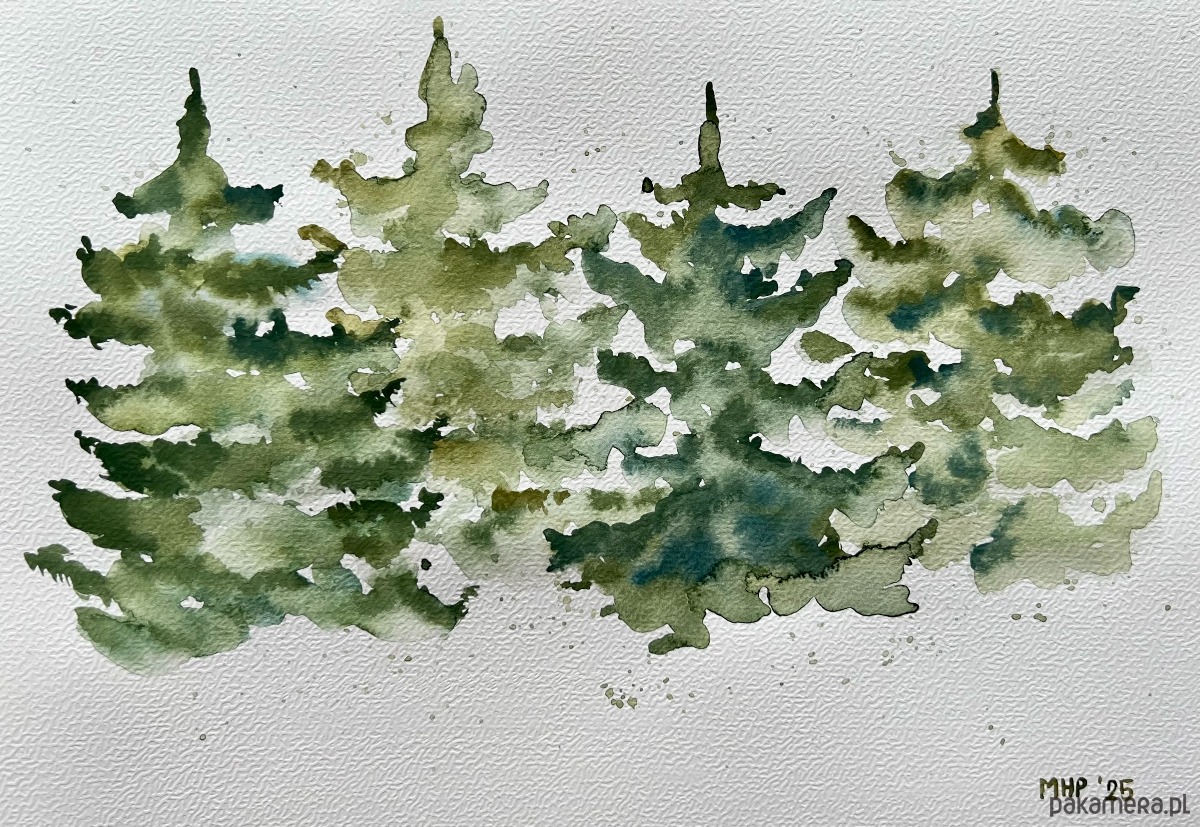Choinki to oryginalna akwarela namalowana na profesjonalnym papierze akwarelowym 300g. Format a4. Praca jest sygnowana z przodu oraz podpisana z tyłu.