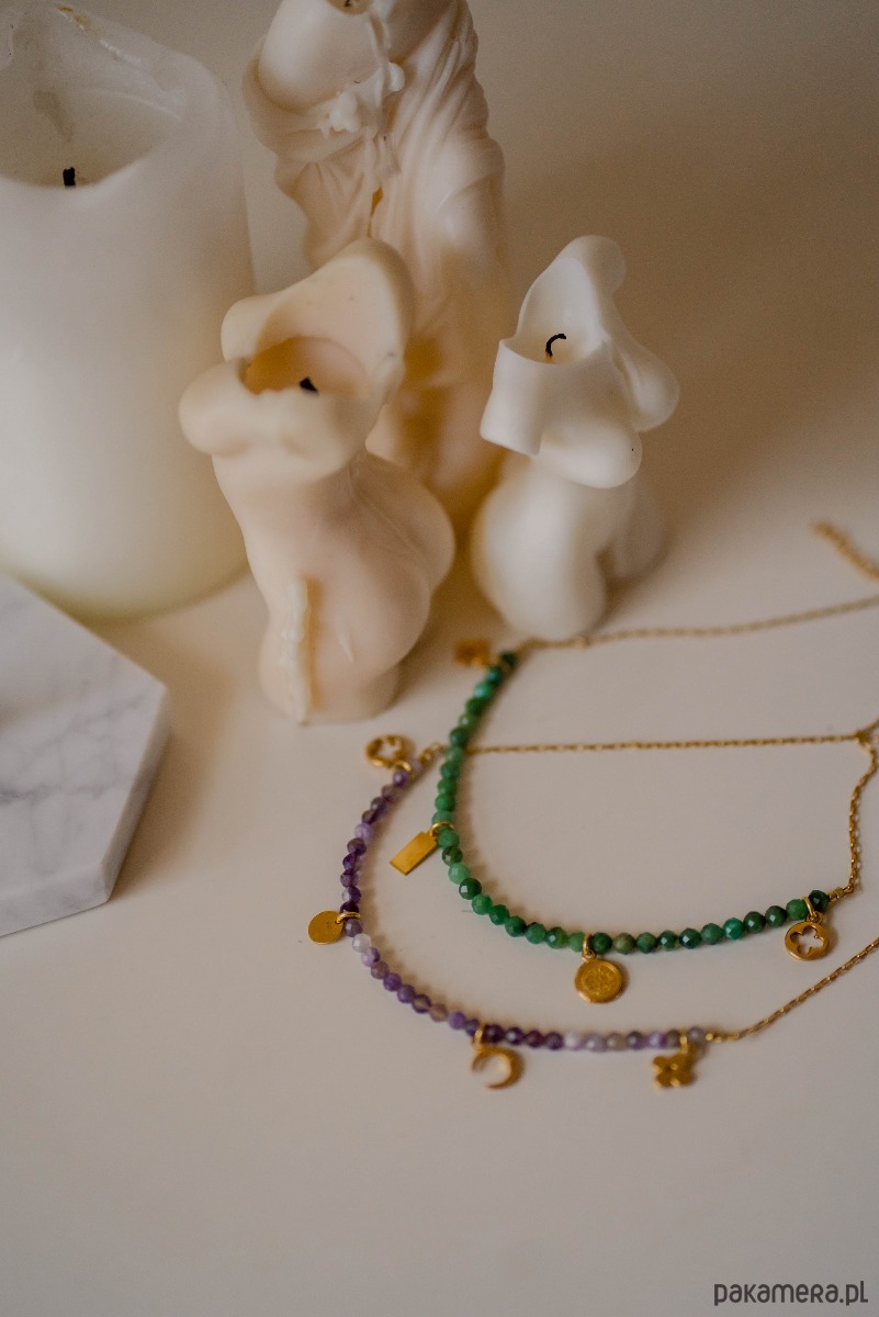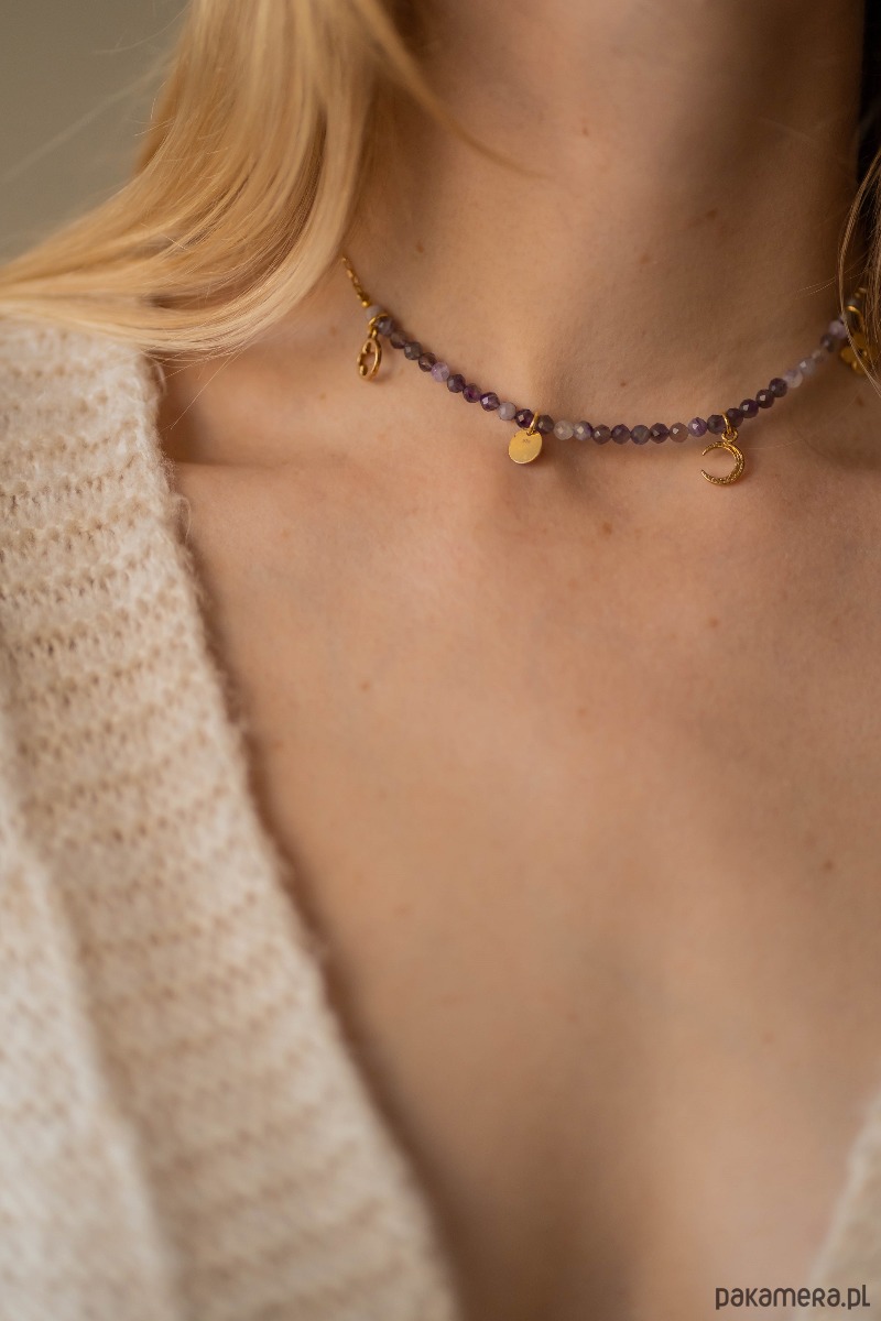 Choker z kamieni naturalnych ametystu na łańcuszku a w dodatku piękne zawieszki, ten choker to miłość od pierwszego wejrzenia.