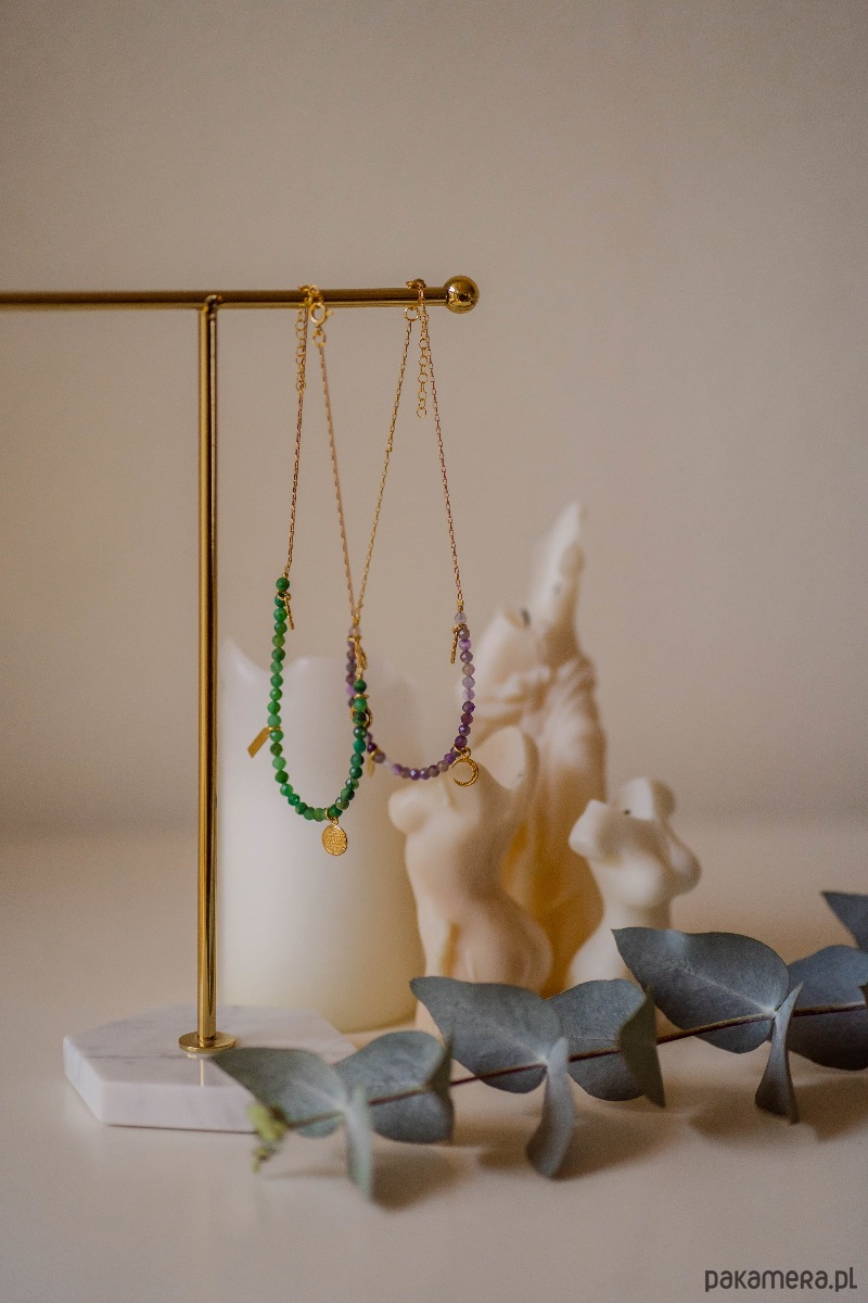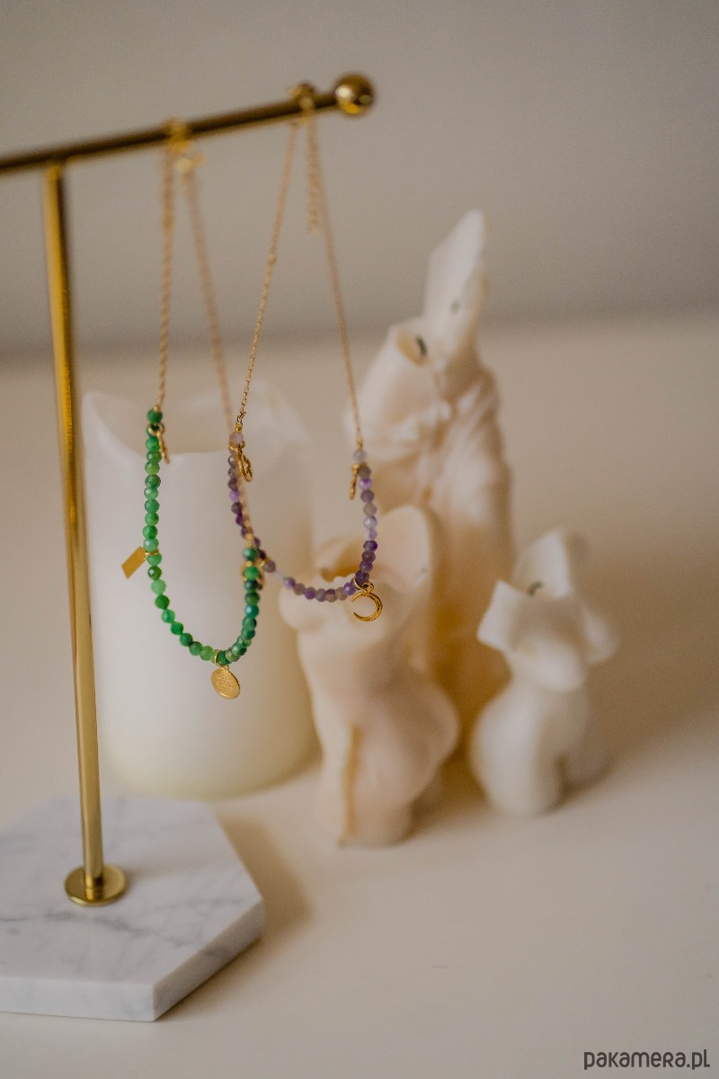 Istnieje możliwość wykonania tego naszyjnika w innym kolorze a więc jeśli podoba Ci się ponadczasowa czerń spineli lub delikatna biel kamieni księżycowych napisz do nas.