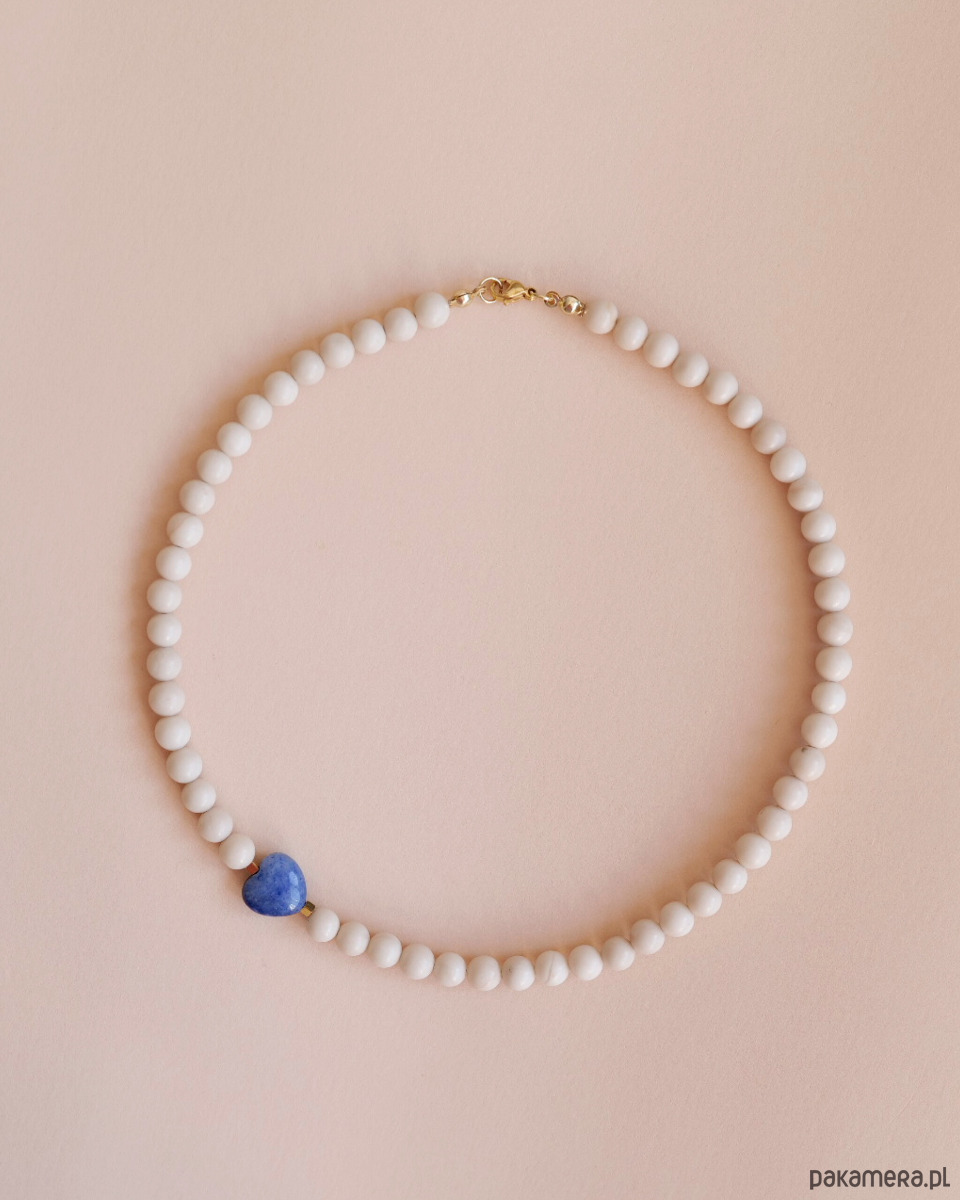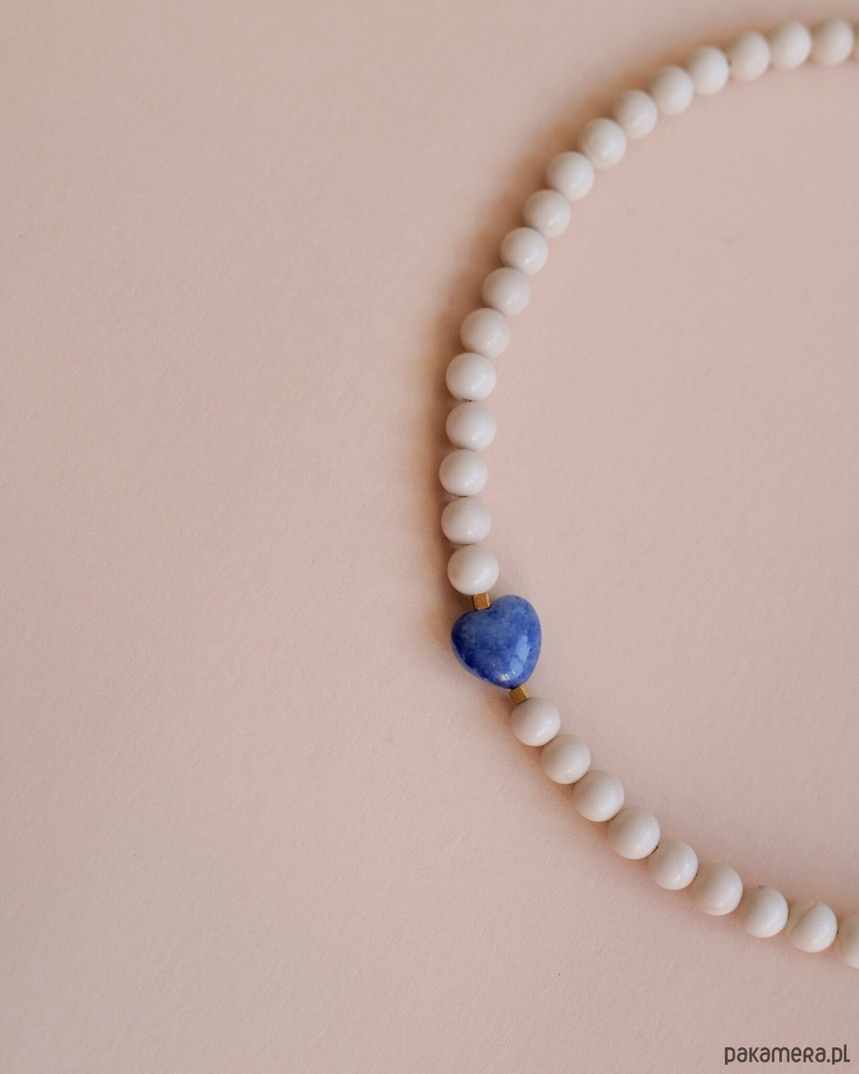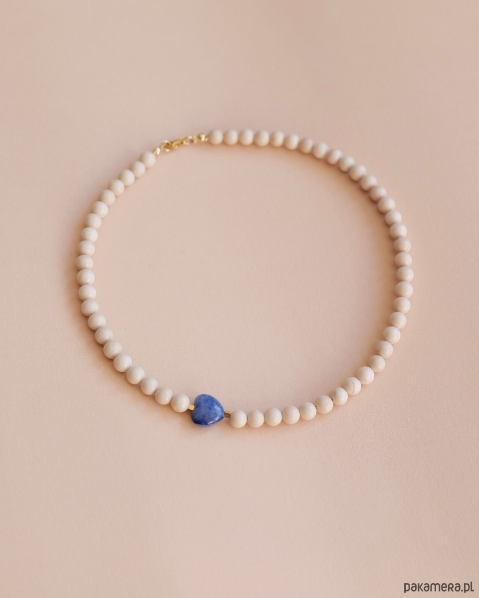 Handmade choker z kamieni rzecznych z przekładką w kształcie serca z awenturynu.