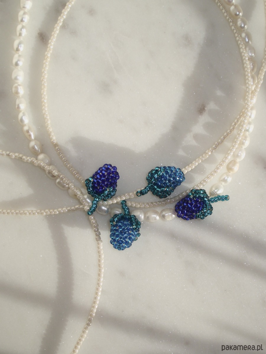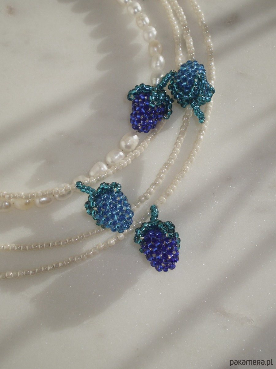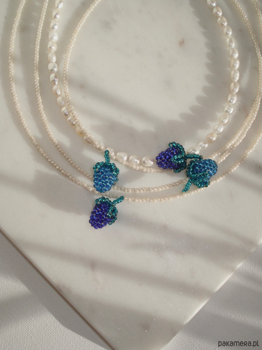 Owoce są ręcznie szyte z najwyższej jakości japońskich, szklanych koralików.