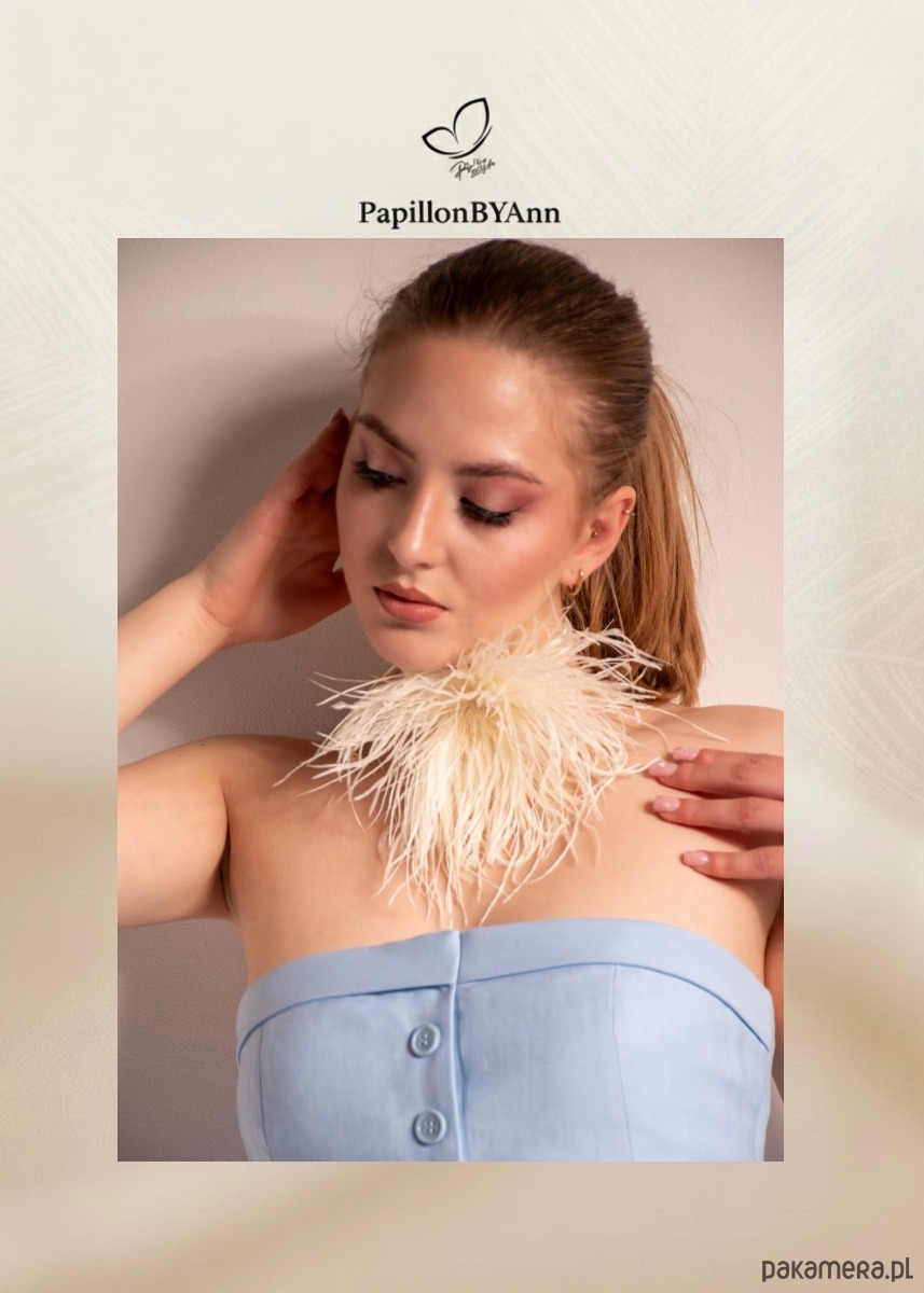 Choker kwiat na szyje na tasiemce regulowany czarny lub kremowy z piórami