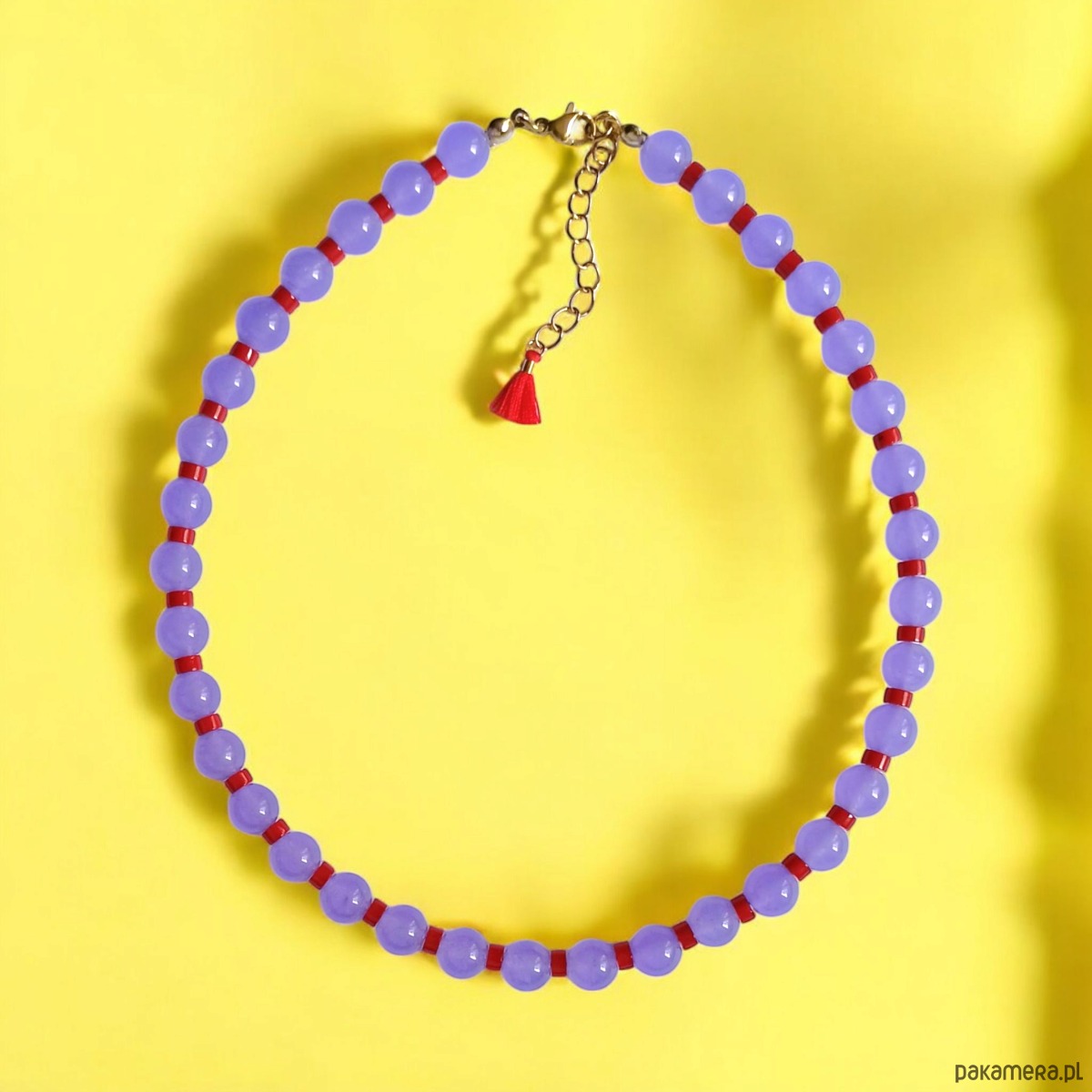 Efektowny choker w super modnym zestawieniu kolorystycznym (lawendowy fiolet + intensywna czerwień)