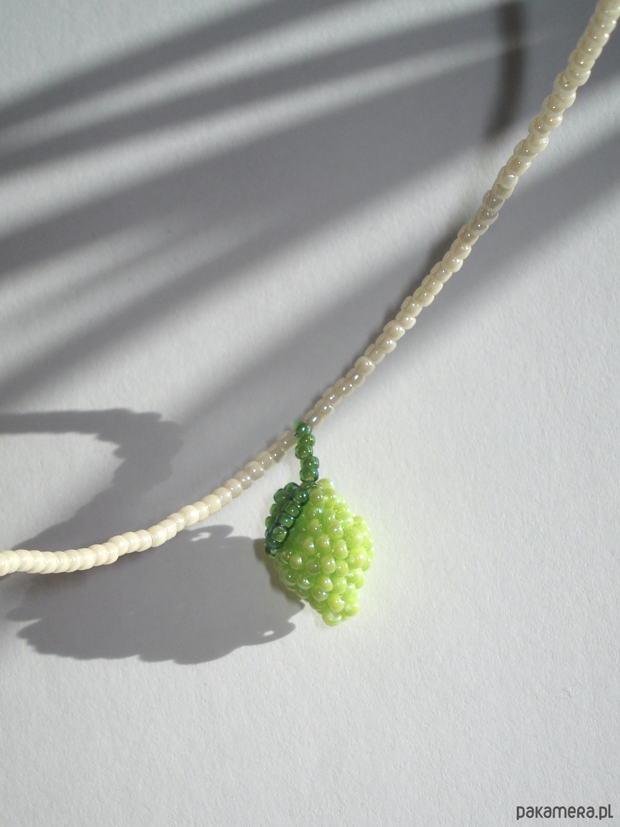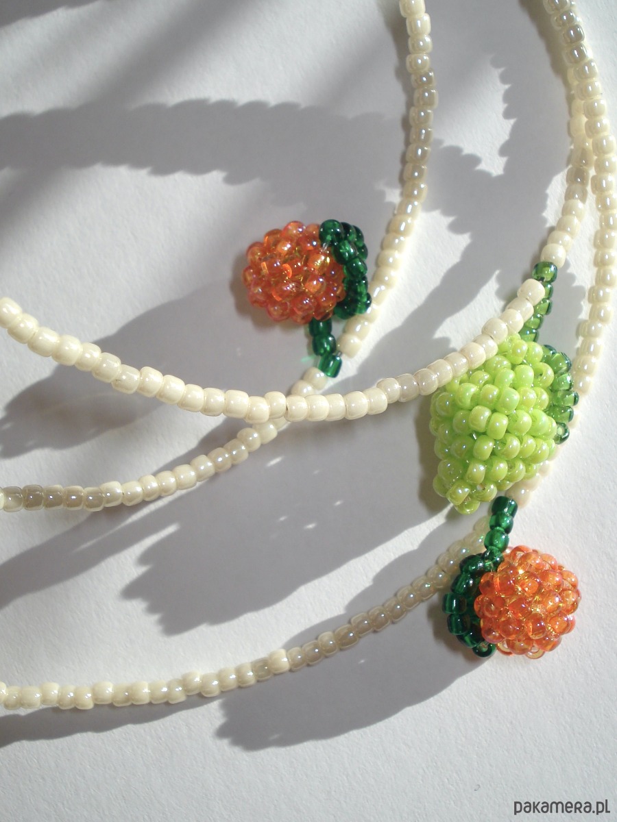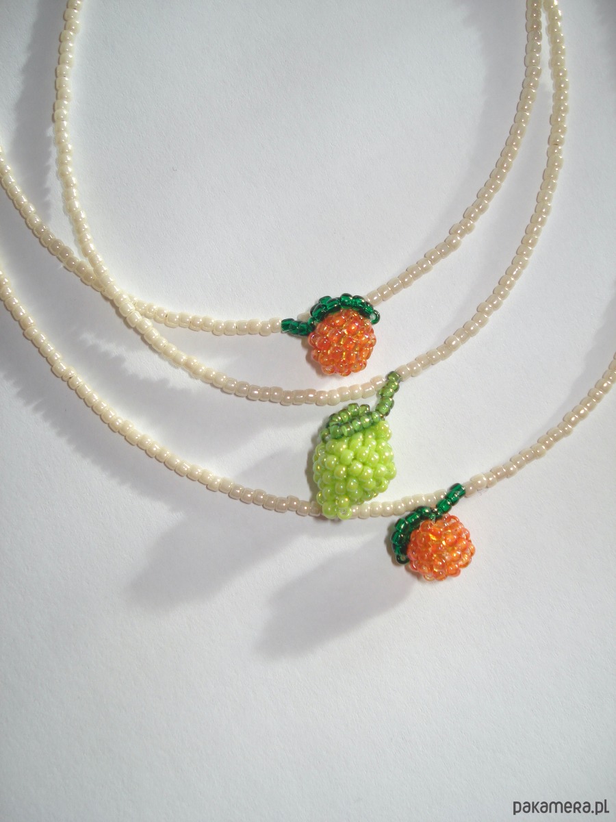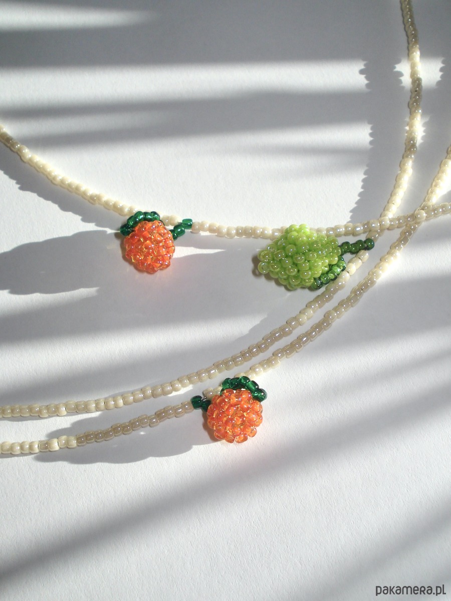 Owoce są ręcznie szyte z najwyższej jakości japońskich, szklanych koralików.