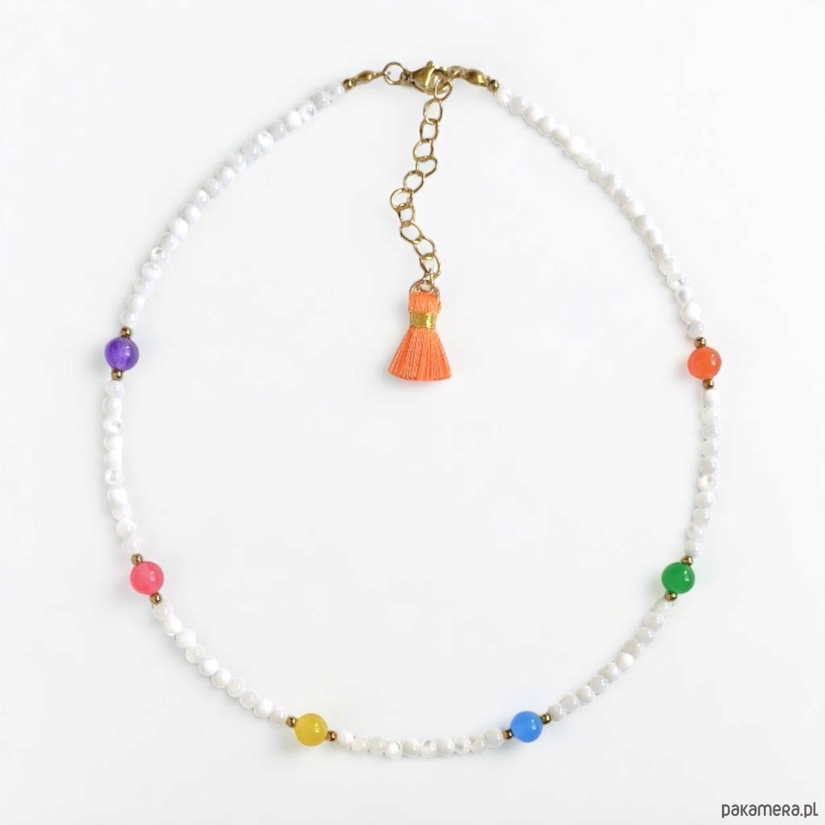 Choker : muszla biała i kolorowy jadeit : summer collection