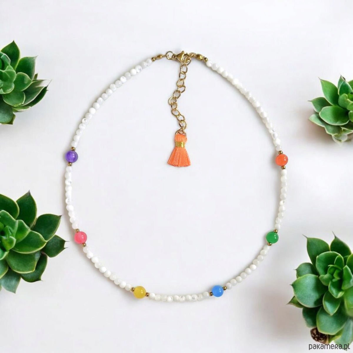 Choker : muszla biała i kolorowy jadeit : summer collection