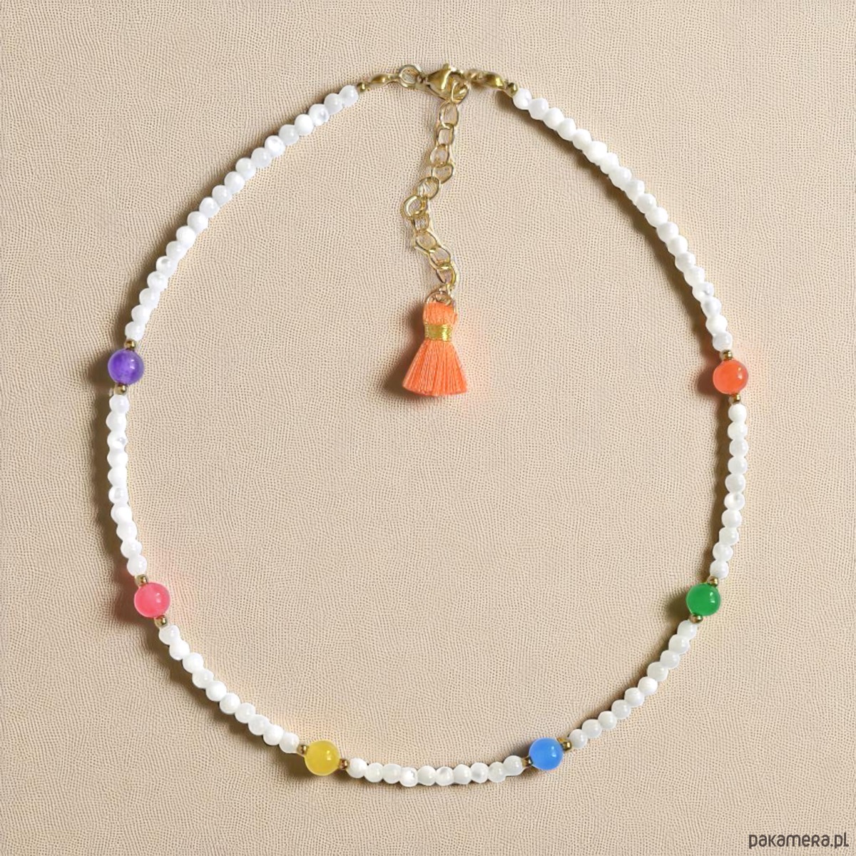 Choker : muszla biała i kolorowy jadeit : summer collection
