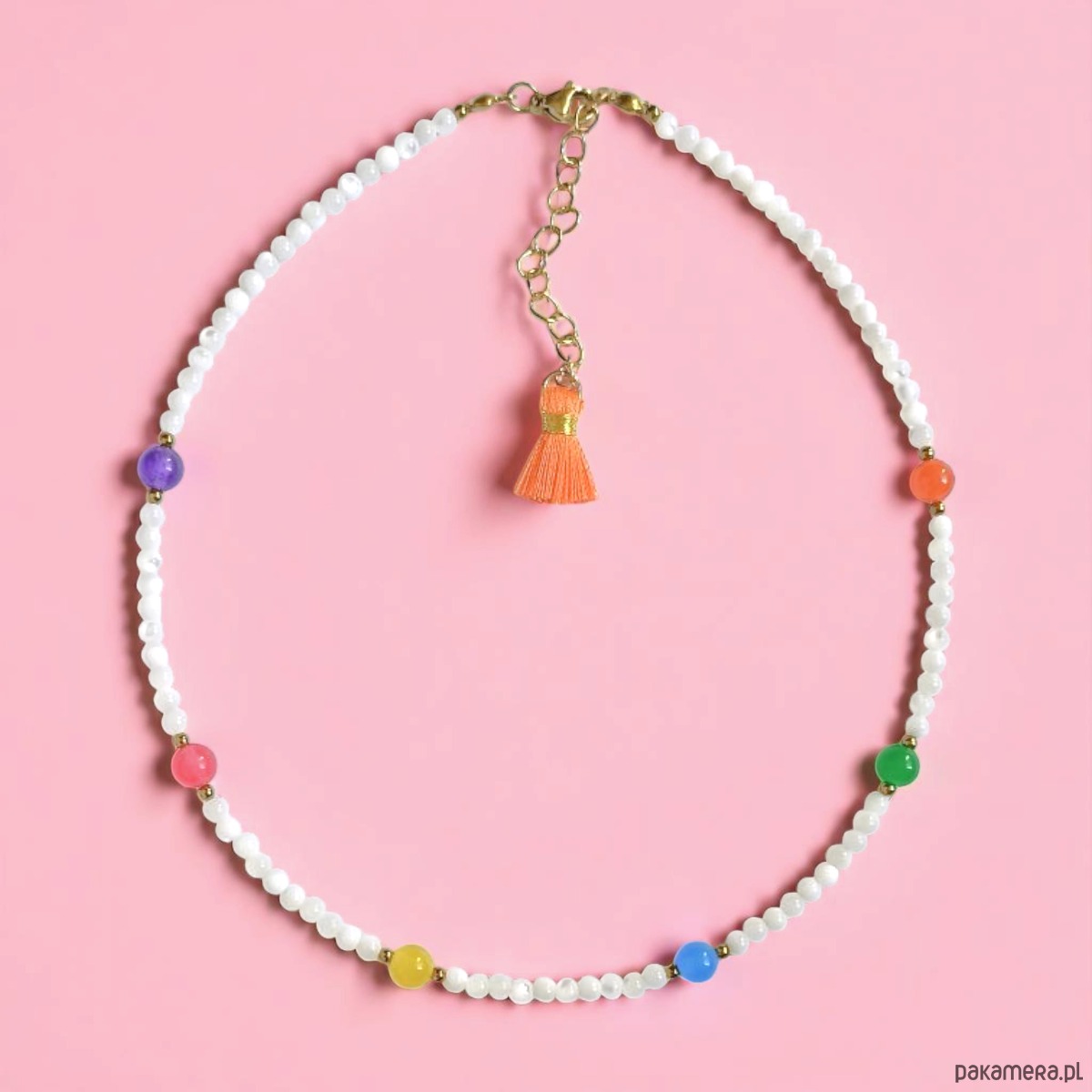 Choker : muszla biała i kolorowy jadeit : summer collection
