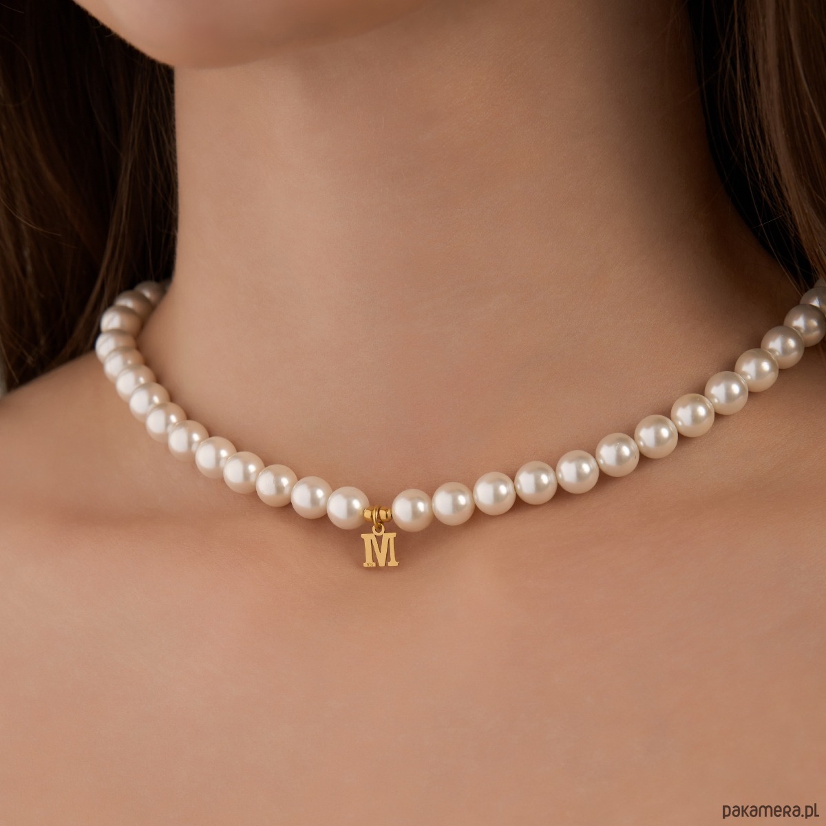 Choker naszyjnik perły literka- srebro 925 pozłacane