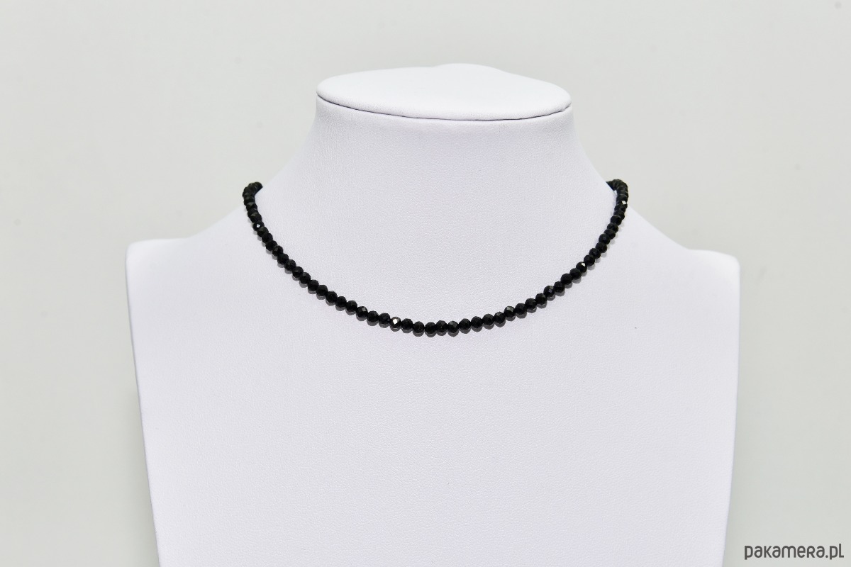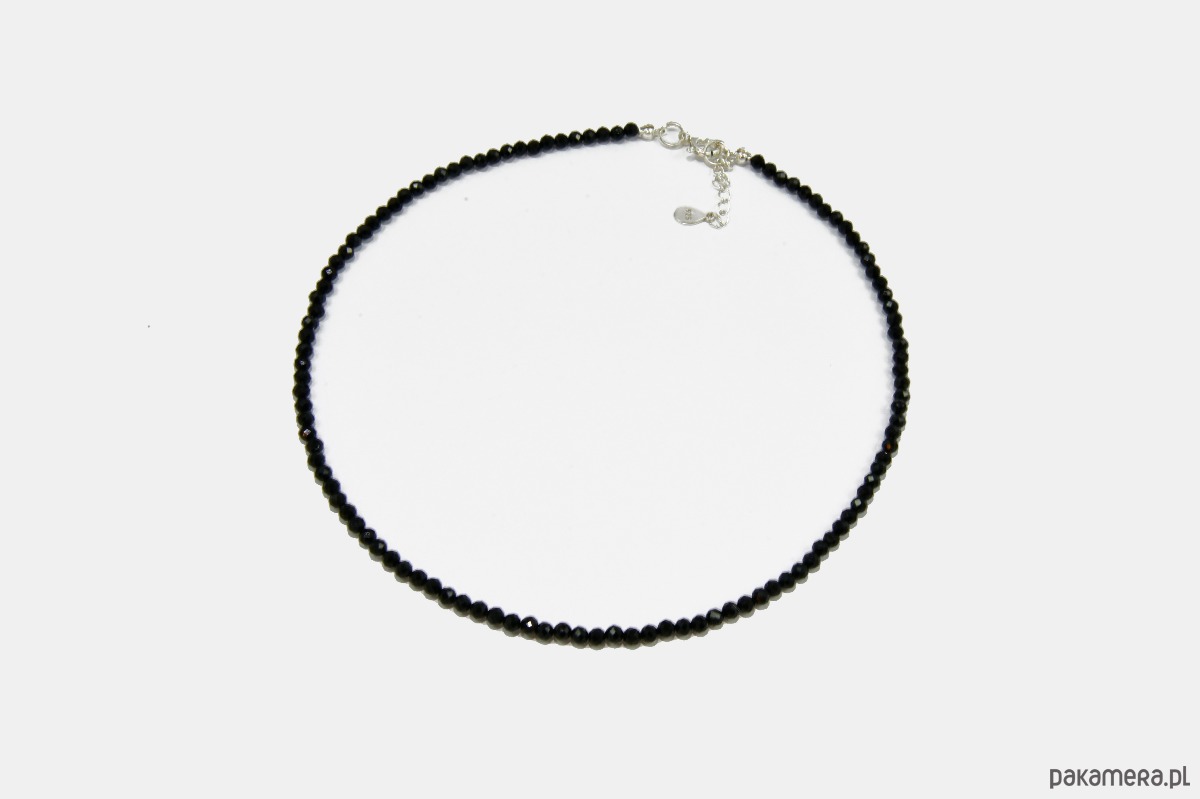 Subtelny, modny naszyjnik z wyjątkowych kamieni turmalinu prezentuje się wspaniale. Drobne czarne kamienie delikatnie połyskują przyciągając wzrok otoczenia. Srebrny dystansowy łańcuszek pozwala przedłużyć naszyjnik o 3 cm.