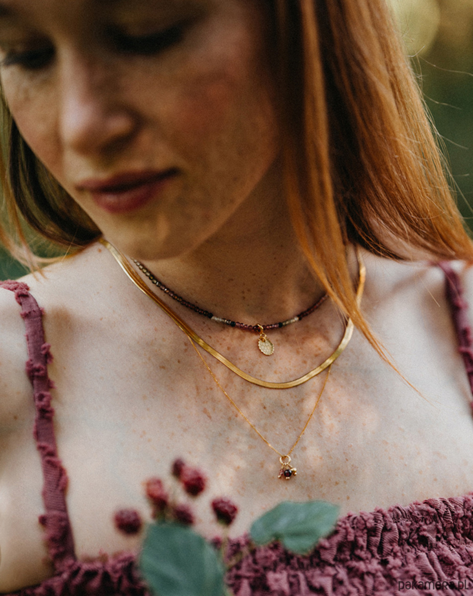Unikatowe cieniowane szafiry w połączeniu z symboliczną zawieszką stworzą duet, który otuli Cię jesiennym ciepłem. Choker będzie idealnym towarzyszem dla ulubionego jesiennego swetra zarzuconego na sukienkę, którą nosiłaś całe lato. Malina symbolizująca słodycz czy jabłko symbolizujące obfitość? Zawieszka jest zamocowana na karabińczyku, dzięki temu możesz nosić choker solo lub wybrać dodatkowy symbol do zestawu.