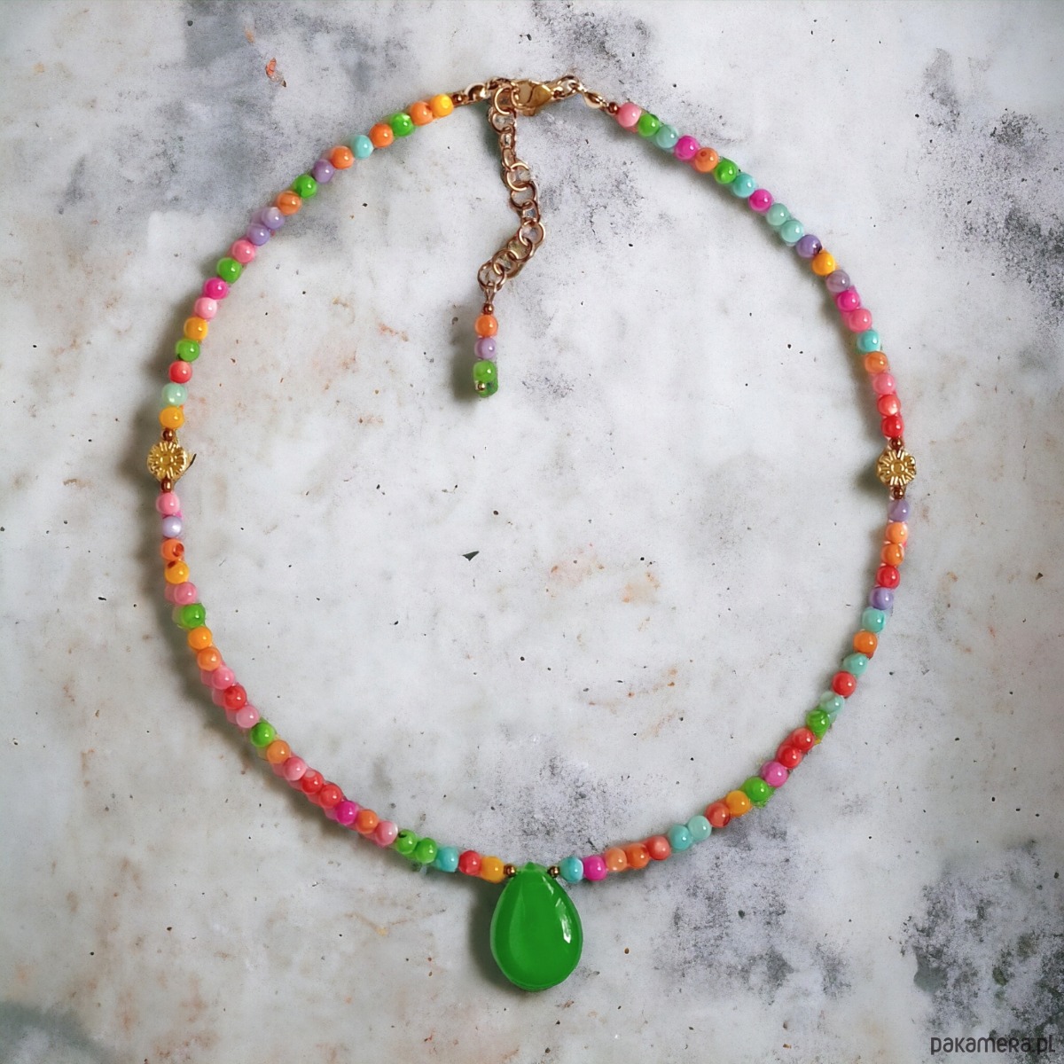 Choker : summer collection : kolorowa muszla i jadeit