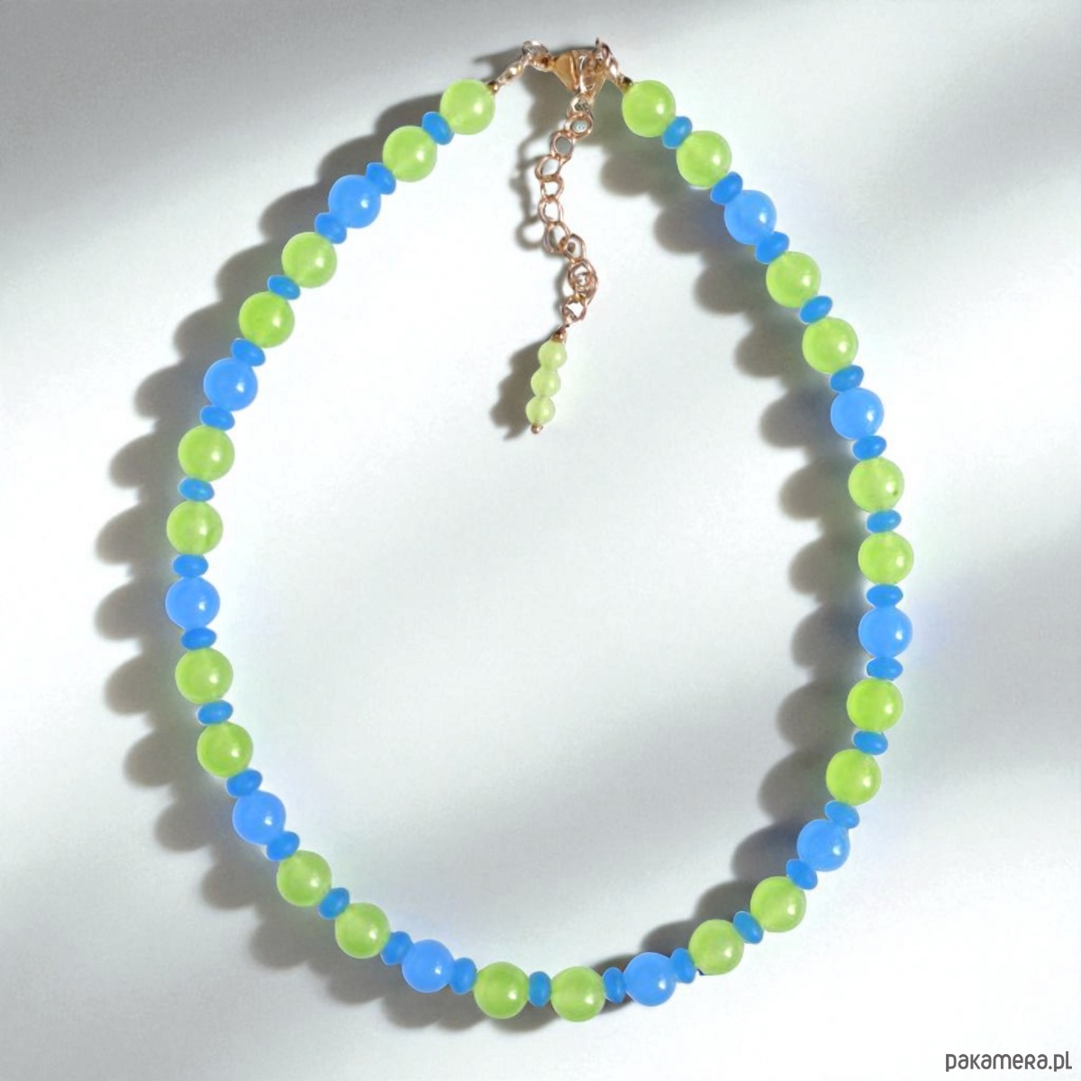 Efektowny choker w soczystym połączeniu kolorystycznym: jasna limonka + niebieski.