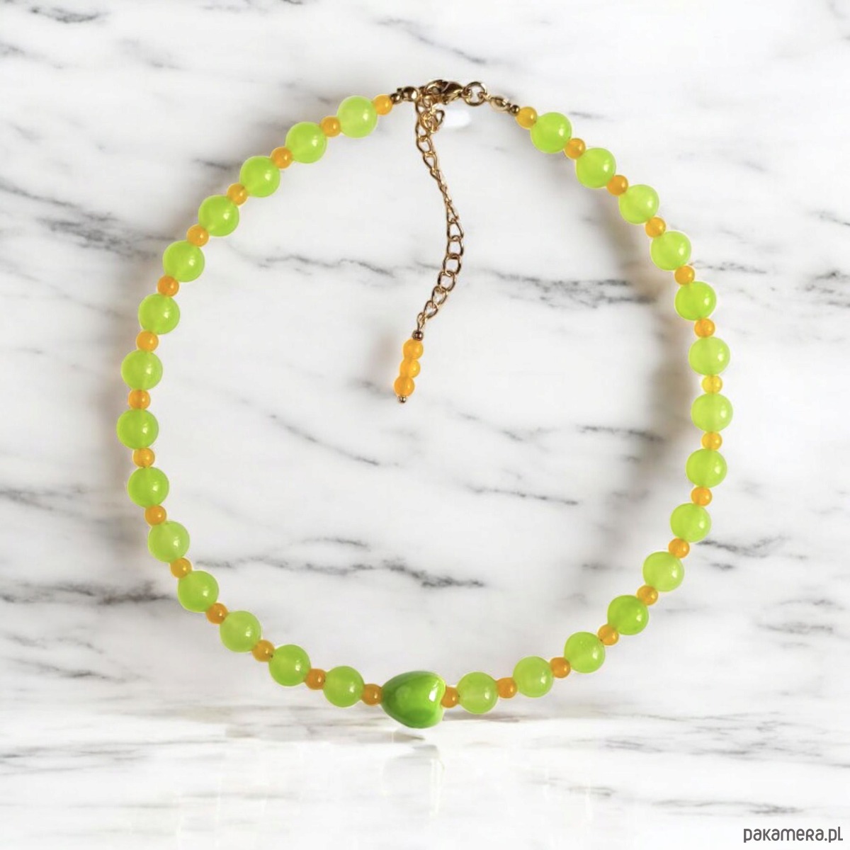 Efektowny choker w soczystym połączeniu kolorystycznym: jasna limonka + żółty.