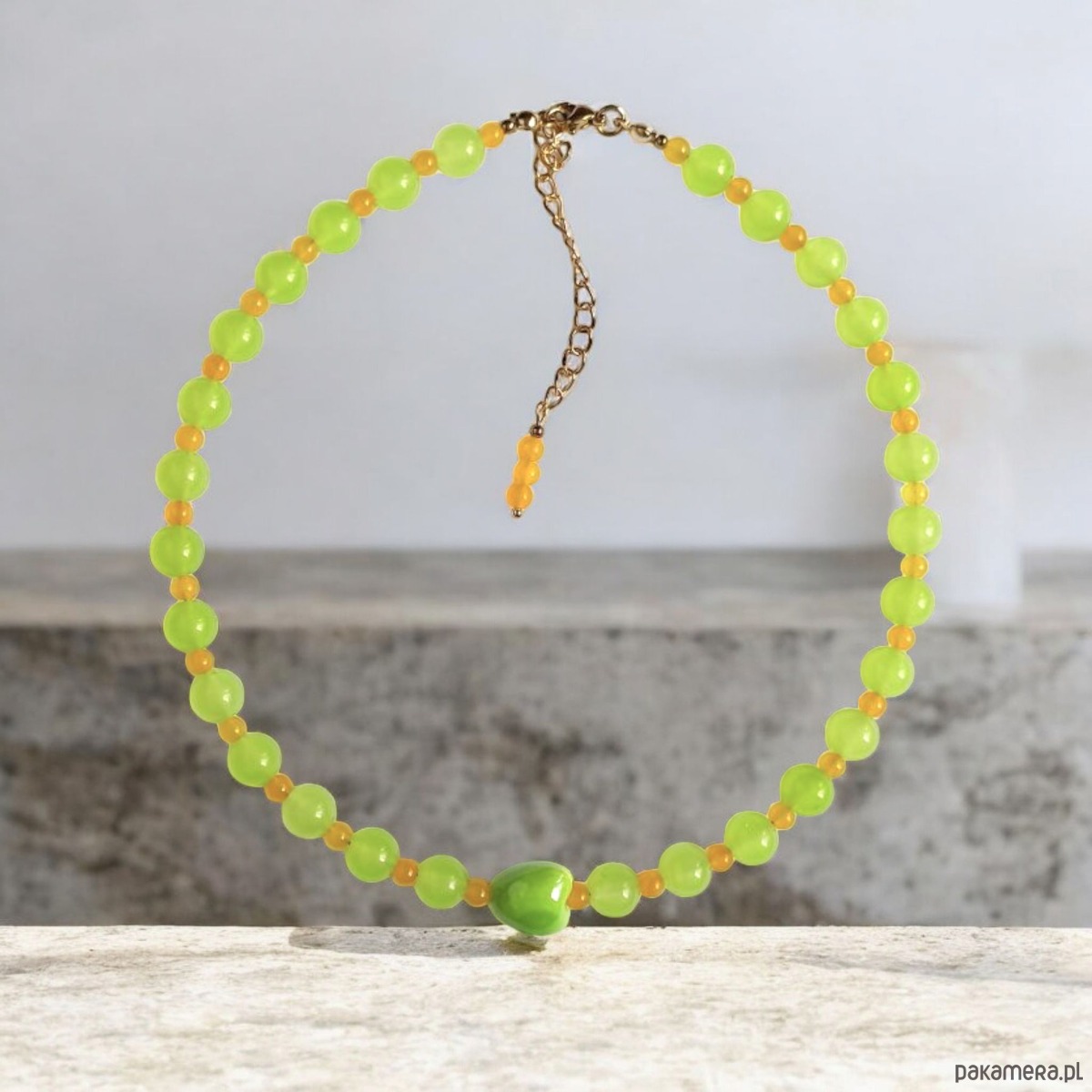 Naszyjnik na solidnej lince jubilerskiej - został wykonany w całości z jadeitu (kule 8mm, kuleczki 4mm) oraz ceramicznego serduszka w centrum (ok. 13mm)