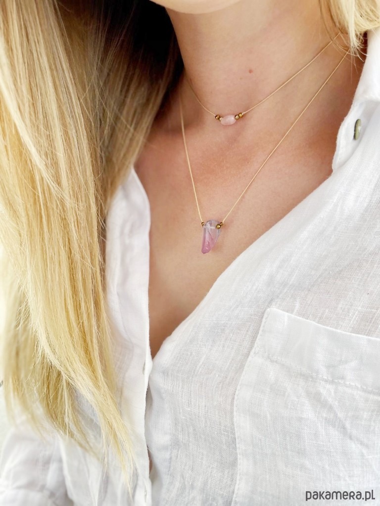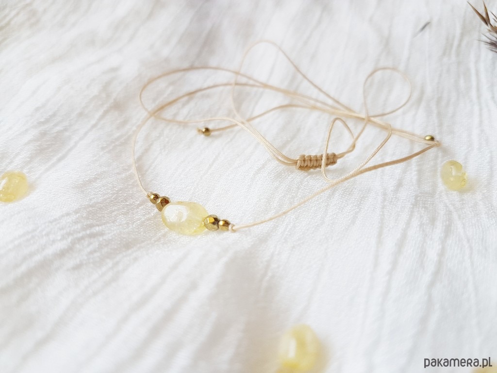 Naszyjnik wykonany jest z wysokiej jakości nylonowego jubilerskiego sznurka w kolorze beżowym. Idealny do noszenia na codzień dla każdej kobiety. Jego długość jest regulowana (całkowita wynosi około 65cm).